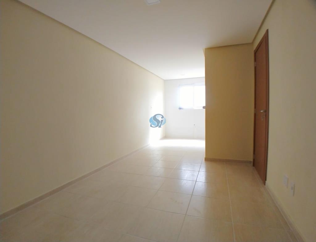 Apartamento com 1 dormitório, sala e cozinha integrados, banheiro e vaga de estacionamento.