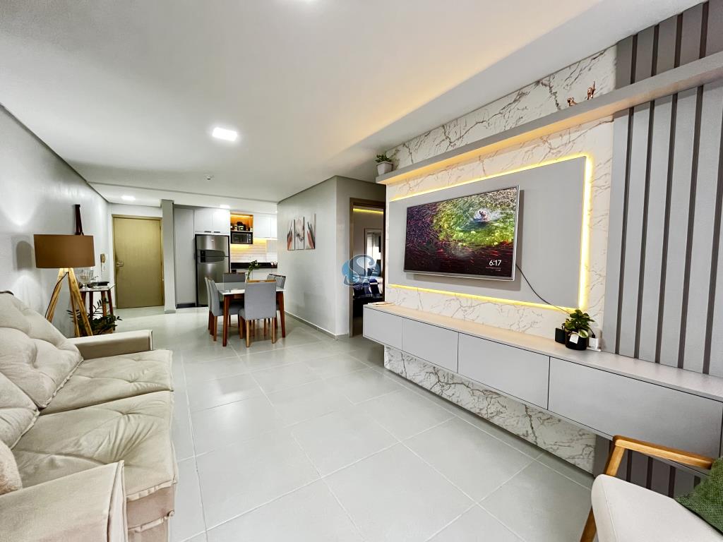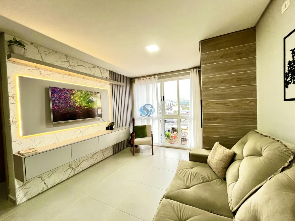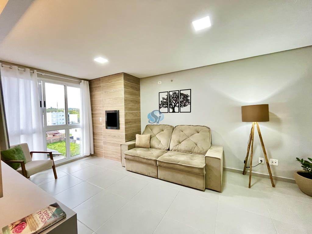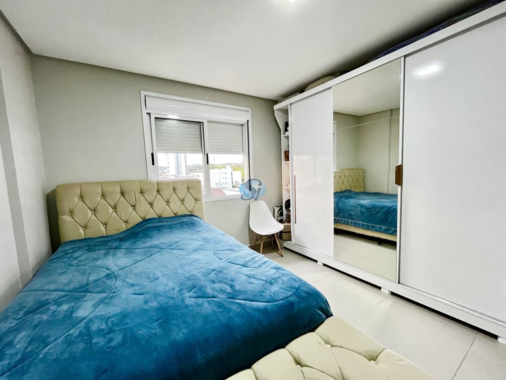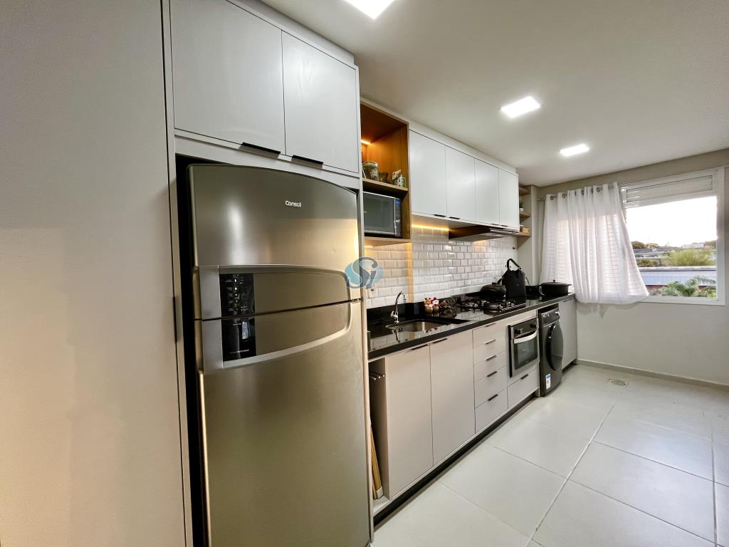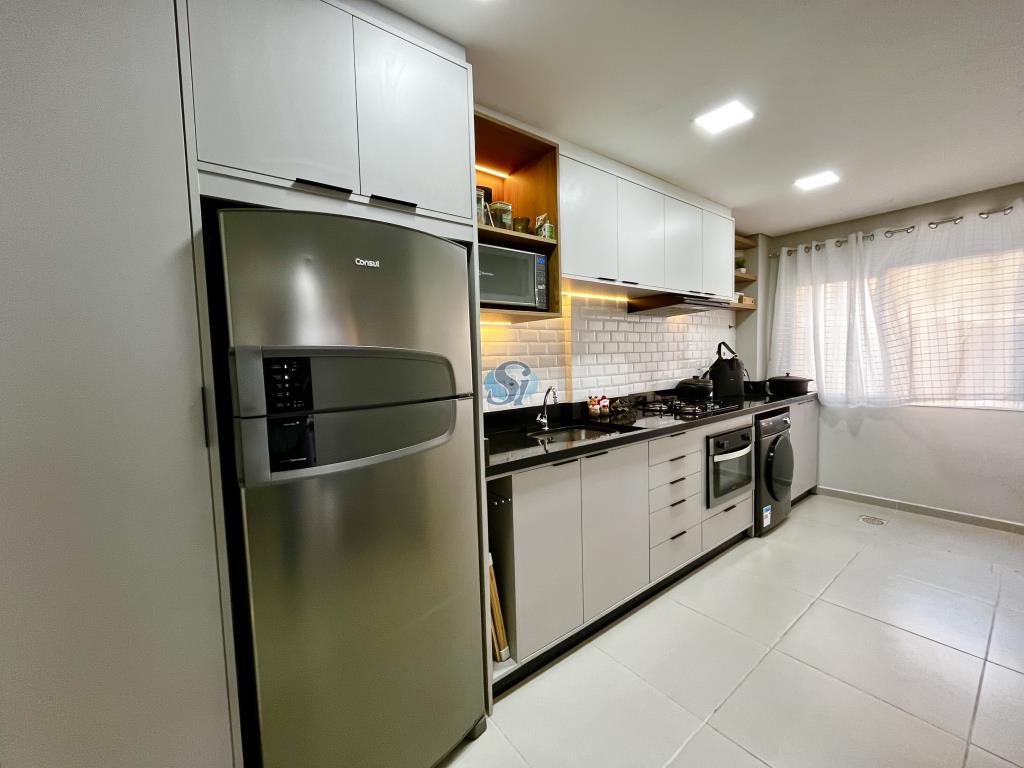 Apartamento de 02 dormitórios, sala e cozinha em ambiente integrado, banheiro e garagem. Ficam os móveis fixos da cozinha, banheiro e sala. Condominio com elevador e salão de festas.