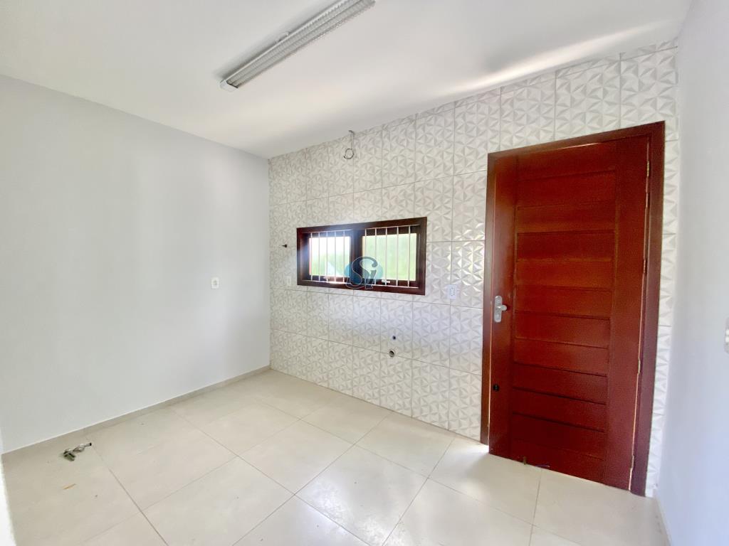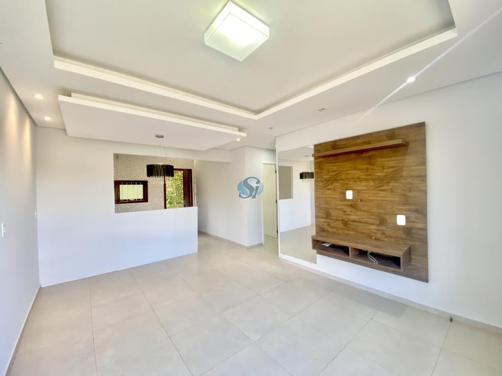 Casa com 2 dormitórios, sala e cozinha integrados, banheiro, área de serviço externa e estacionamento para carro