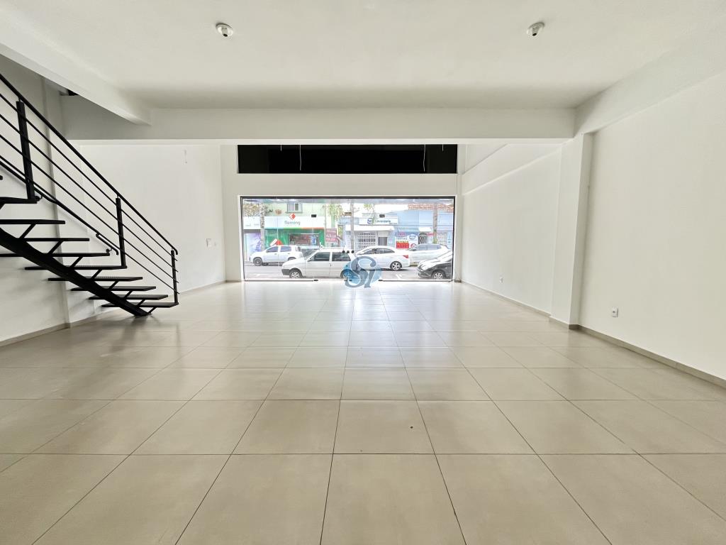 Sala comercial com 70 mt² térreo e 30 mt² de mazanino com um banheiro, portas automatizadas. Condomínio