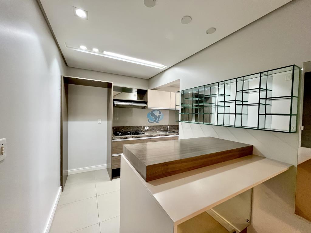 Apartamento semi mobiliado com 2 dormitórios (1 suíte), sala e cozinha integrados em conceito aberto, 2 vagas de garagem.