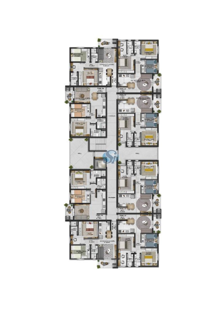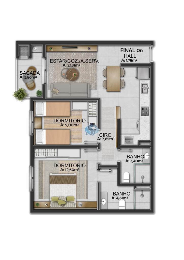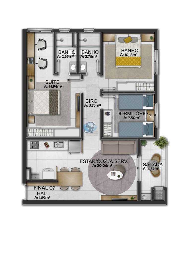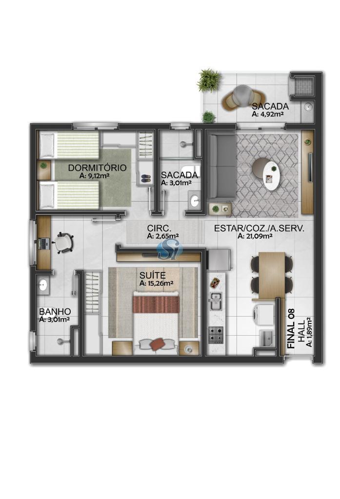 Apartamentos de 2 e 3 dormitórios com suíte ( 68m2 a 79m2) * Espera para ar condicionado * Vaga de garagem * Sacada com churrasqueira * Aberturas em PVC ou Alumínio * Elevador * Gesso * Porcelanato nas áreas molhadas * Água Quente * Gás, luz e água individualizados * Salão de festas * Academia * Estacionamento para visitantes