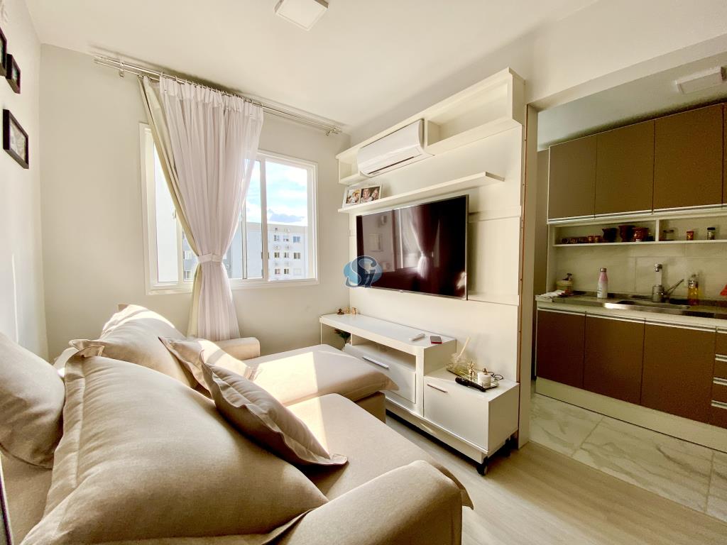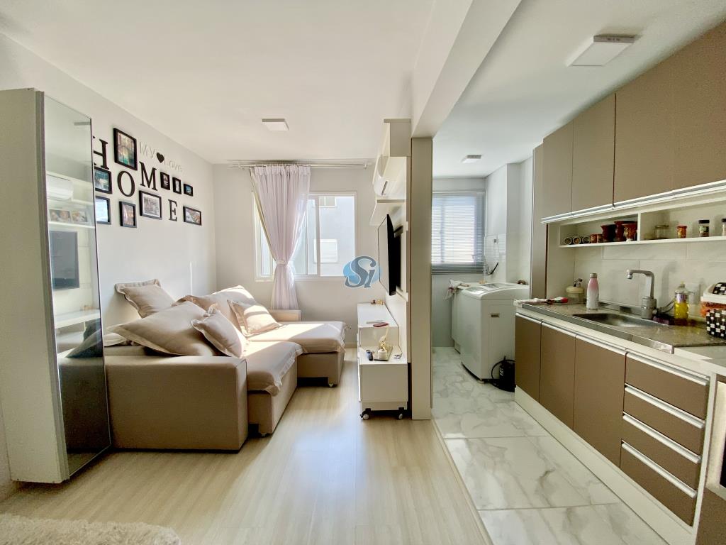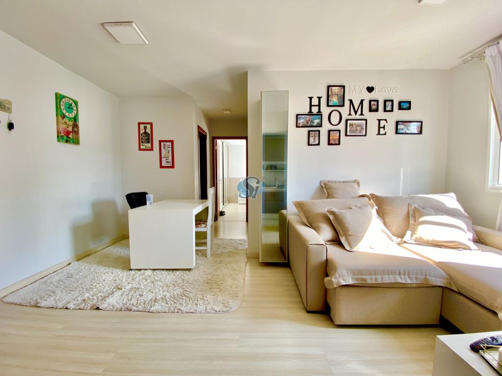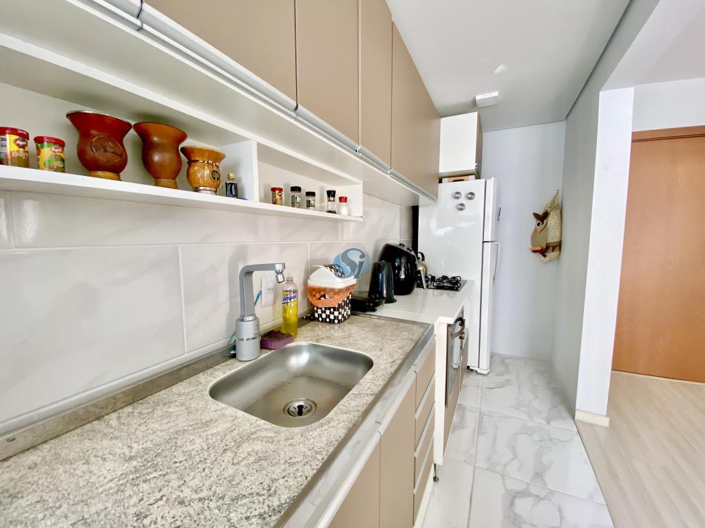 Apartamento semimobiliado com 2 dormitórios, sala e cozinha integrados, banheiro e uma vaga de garagem