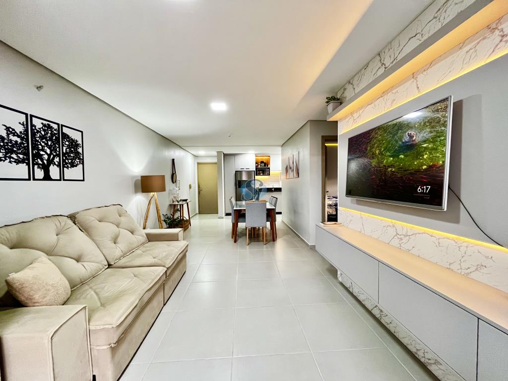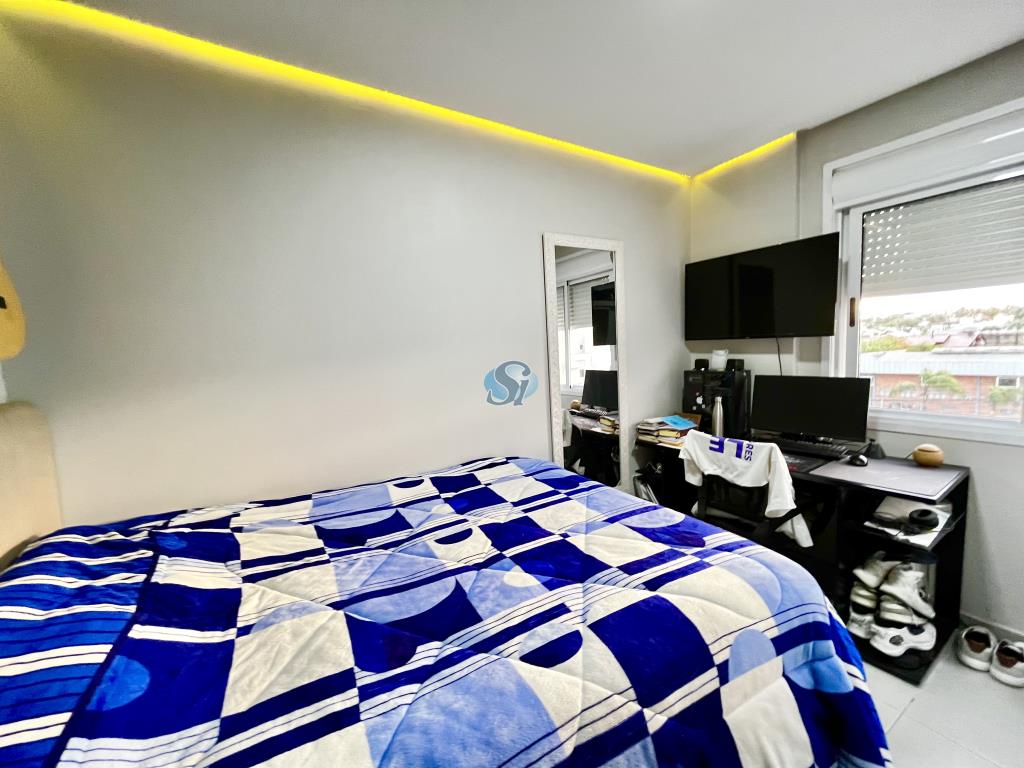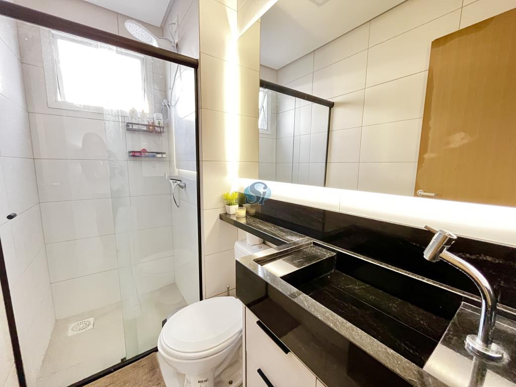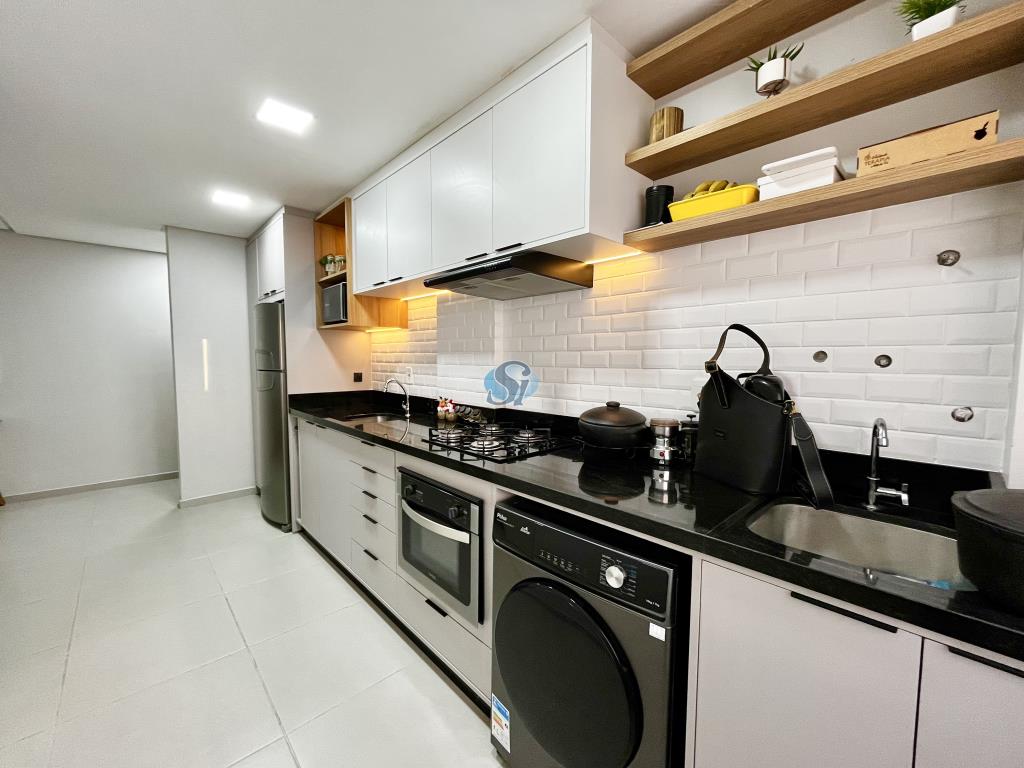 Apartamento de 02 dormitórios, sala e cozinha em ambiente integrado, banheiro e garagem. Ficam os móveis fixos da cozinha, banheiro e sala. Condominio com elevador e salão de festas.