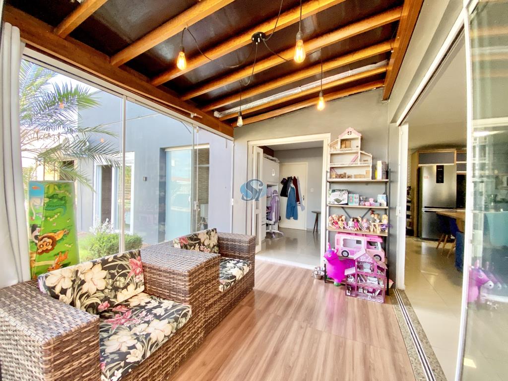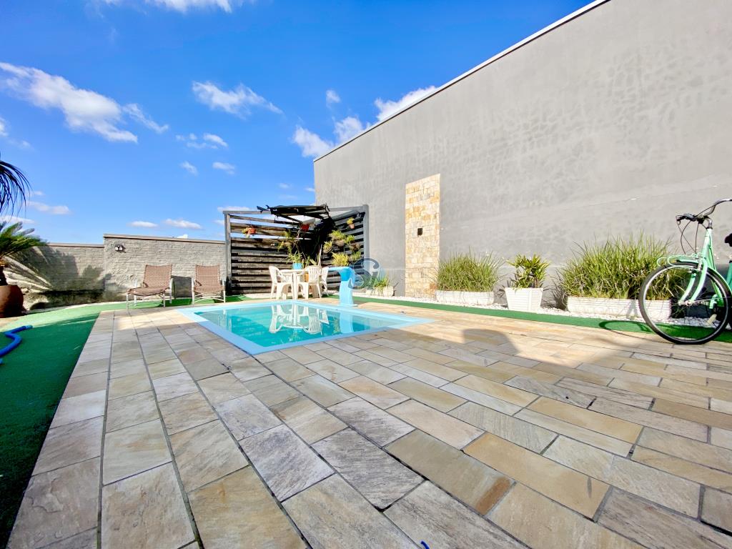 Esta linda residência oferece conforto, segurança e lazer em um só lugar. Com dois quartos, possui sala e cozinha integradas, criando um ambiente moderno e funcional. O jardim de inverno garante charme e iluminação natural aos espaços internos. Na área externa, a casa conta com um quiosque com churrasqueira, perfeito para momentos de confraternização, além de uma piscina ideal para os dias de calor e um belo jardim com paisagismo planejado. O imóvel dispõe ainda de garagem coberta, porcelanato em todos os ambientes, rebaixamento de gesso, aberturas automatizadas em PVC, espera para split, cerca elétrica e sistema de alarme, proporcionando mais conforto e segurança para toda a família. Os móveis sob medida permanecem no imóvel, oferecendo praticidade e ótimo aproveitamento dos espaços. Uma casa pensada nos detalhes para quem busca qualidade de vida.
