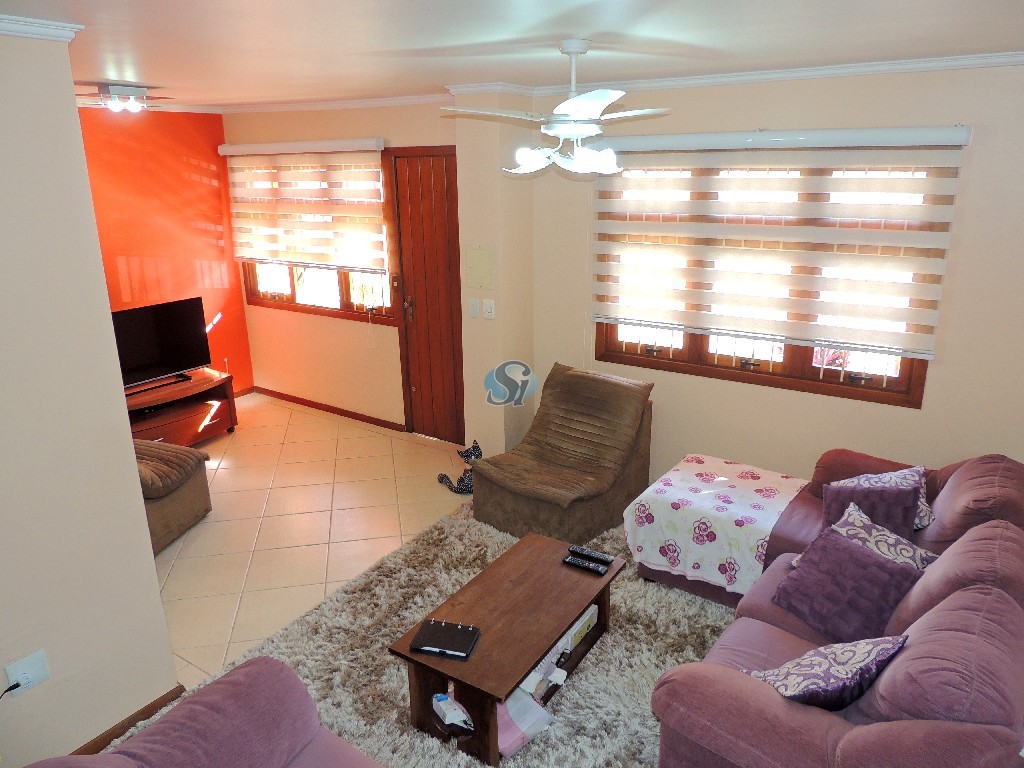 Casa de alvenaria com 3 dormitórios,sendo 1 suíte,com sacada, mais 1 banheiro e 1 lavabo, dois ambientes de sala, ampla garagem com salão de festas, pátio nos fundos com canil e espaço para piscina. Com 249 m² de área construída. Avalia imóvel de menor valor e apartamento em Novo Hamburgo.