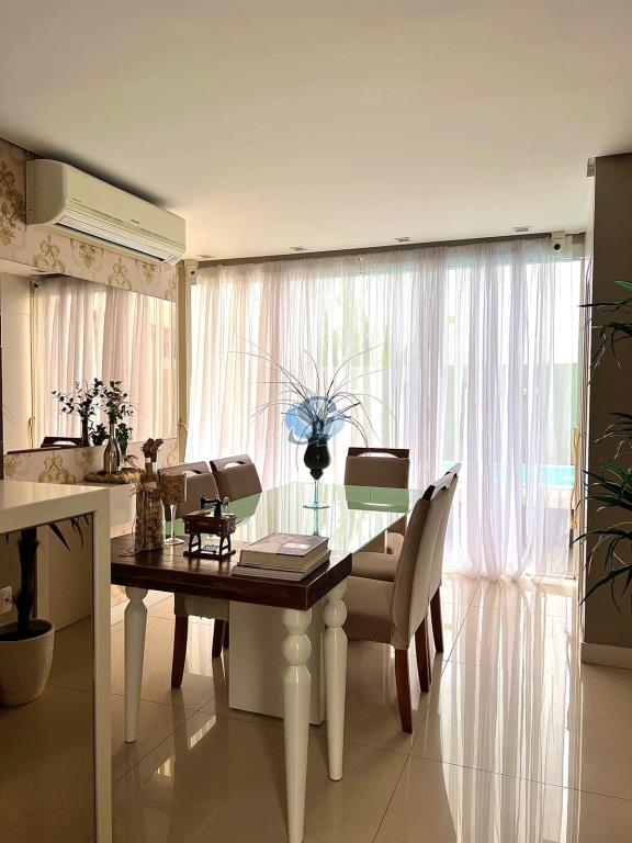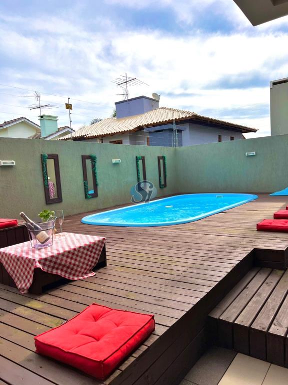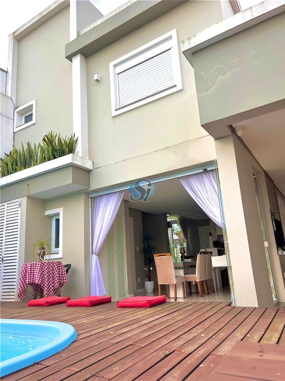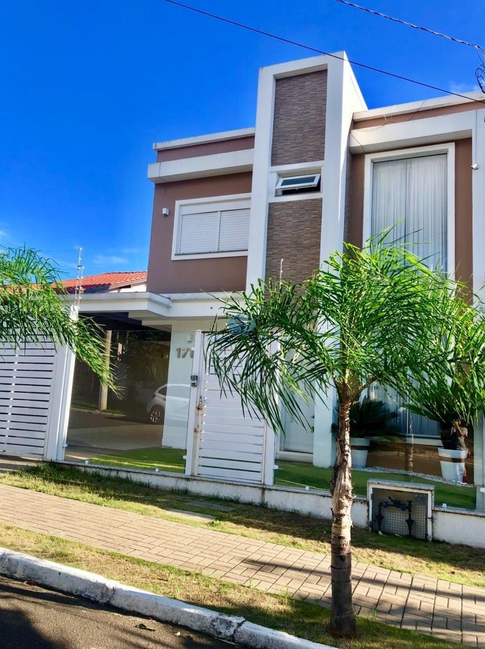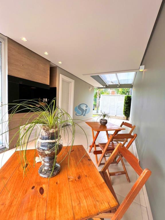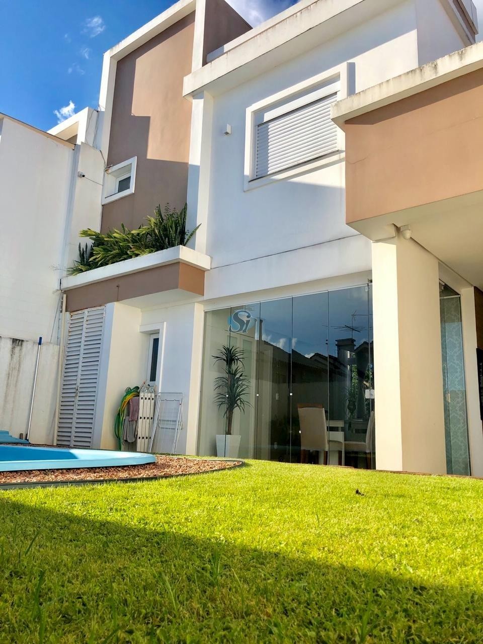 UM JEITO DIFERENTE DE MORAR! Este é o sonho de muita gente, uma casa gostosa com jardim, piscina, ter privacidade e ainda ter segurança. Esta casa reúne tudo isso em 115,30 m², além de uma ampla área de lazer e diversão garantida para sua família. O bairro é tranquilo, residencial e com ótima infraestrutura. Contamos com duas modernas suítes, sala de estar, jantar e cozinha de muito bom gosto! Além de um lavabo, lavanderia separada da cozinha, garagem para 3 carros com uma gostosa churrasqueira para receber os amigos! Água quente em toda casa gerando conforto no inverno, excelente acabamento com gesso, porcelanato, laminado e luminárias muito bem distribuídas. Aberturas em PVC e alumínio gerando conforto acústico, alarme, cerca elétrica, portão eletrônico e câmeras de segurança monitoradas a distância, podendo acompanhar o dia-a-dia dos ambientes do imóvel com total segurança. Ficam todos os móveis sob medida, luminárias e papeis de parede deixando os ambientes extremamente sofisticados. Esta vai ser a casa dos seus sonhos!