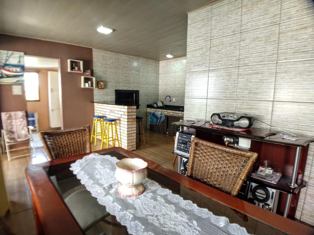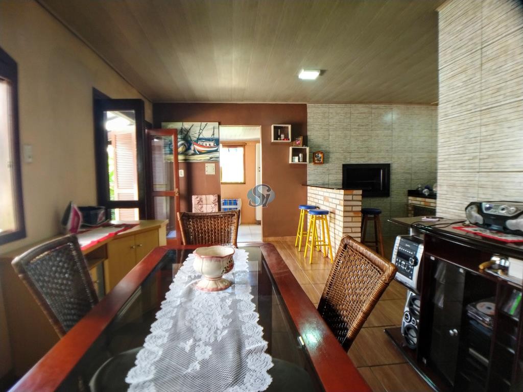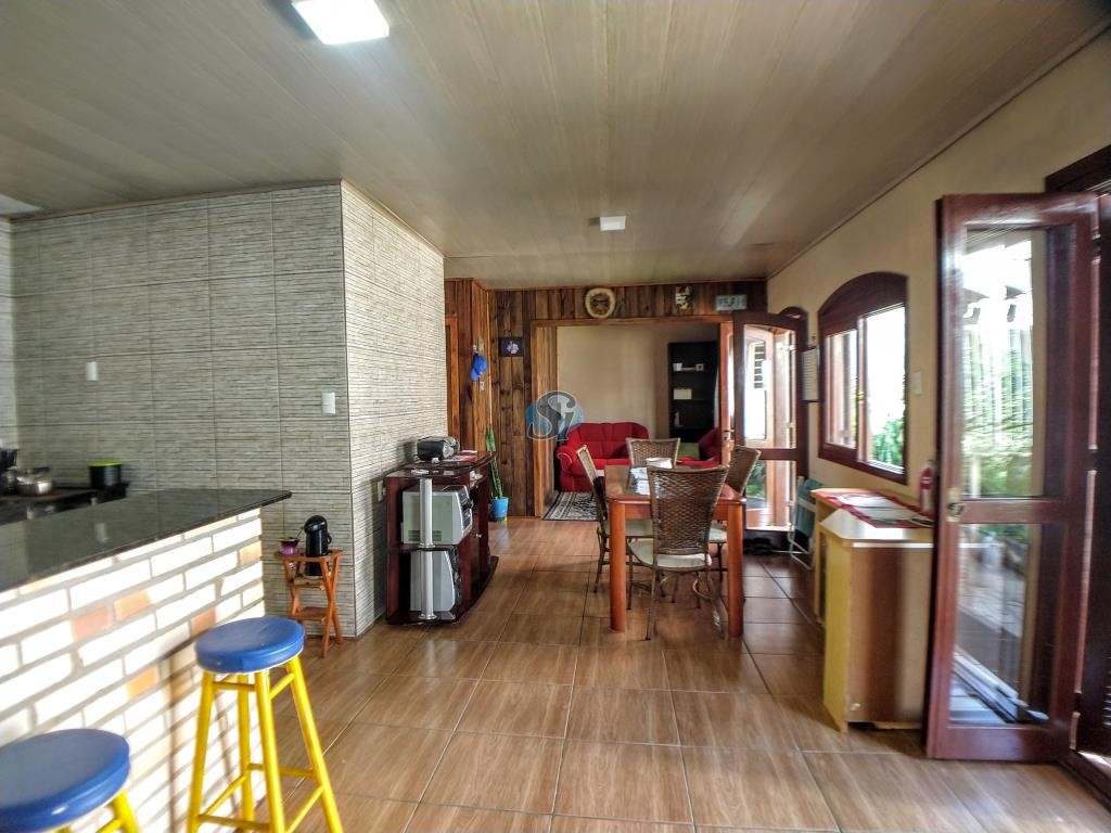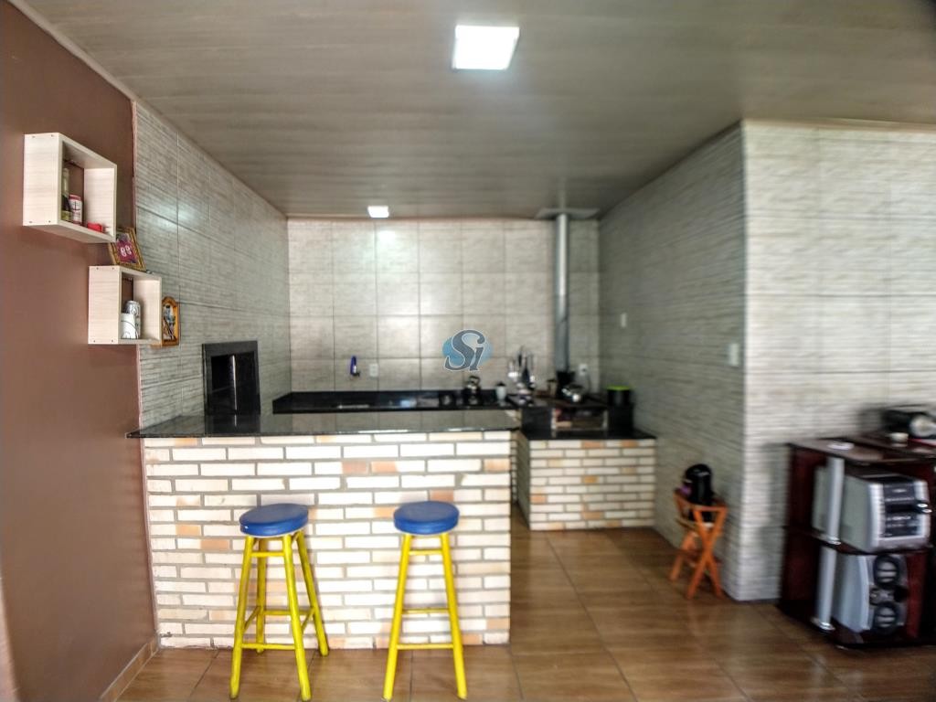 Casa com 3 dormitórios sendo 1 suíte com linda vista, sala de estar, ampla cozinha com pé direito duplo, banheiro social, salão de festas com fogão campeiro, 246m² de área construída e terreno com 390m².