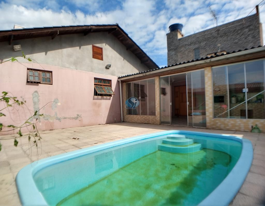 Casa com 3 dormitórios (1 suíte com closet), sala de estar, cozinha, garagem, salão de festas, piscina, terreno medindo 12 x 30, próxima a escola, mercado e ciclovia