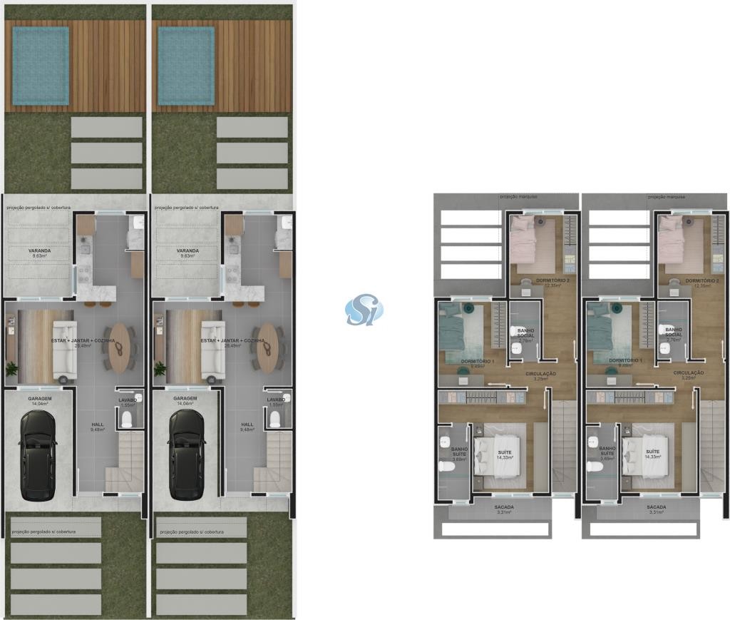Casa com 2 dormitórios (1 suite), sala de estar/ jantar integrados, banheiro, lavabo, garagem
