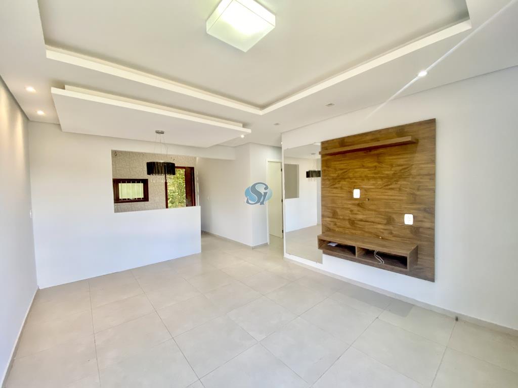Casa com 2 dormitórios, sala e cozinha integrados, banheiro, área de serviço externa e estacionamento para carro