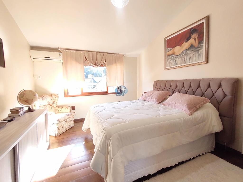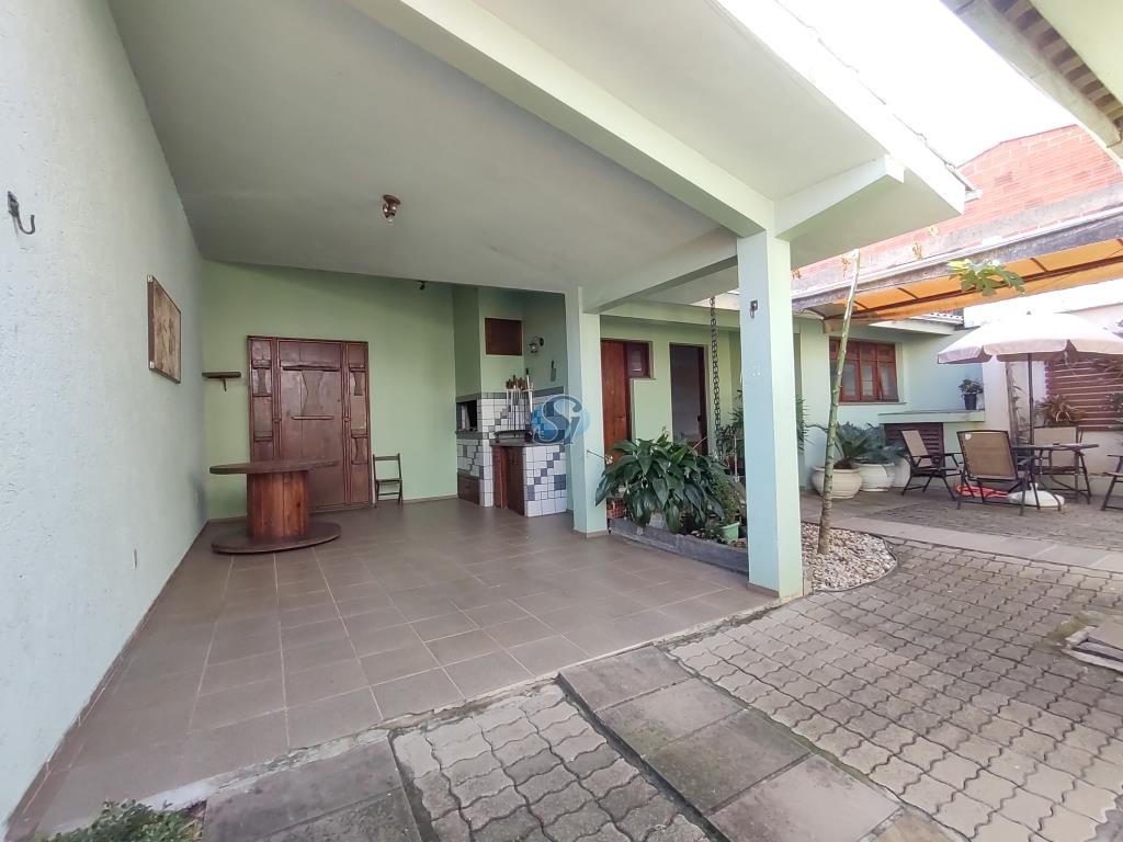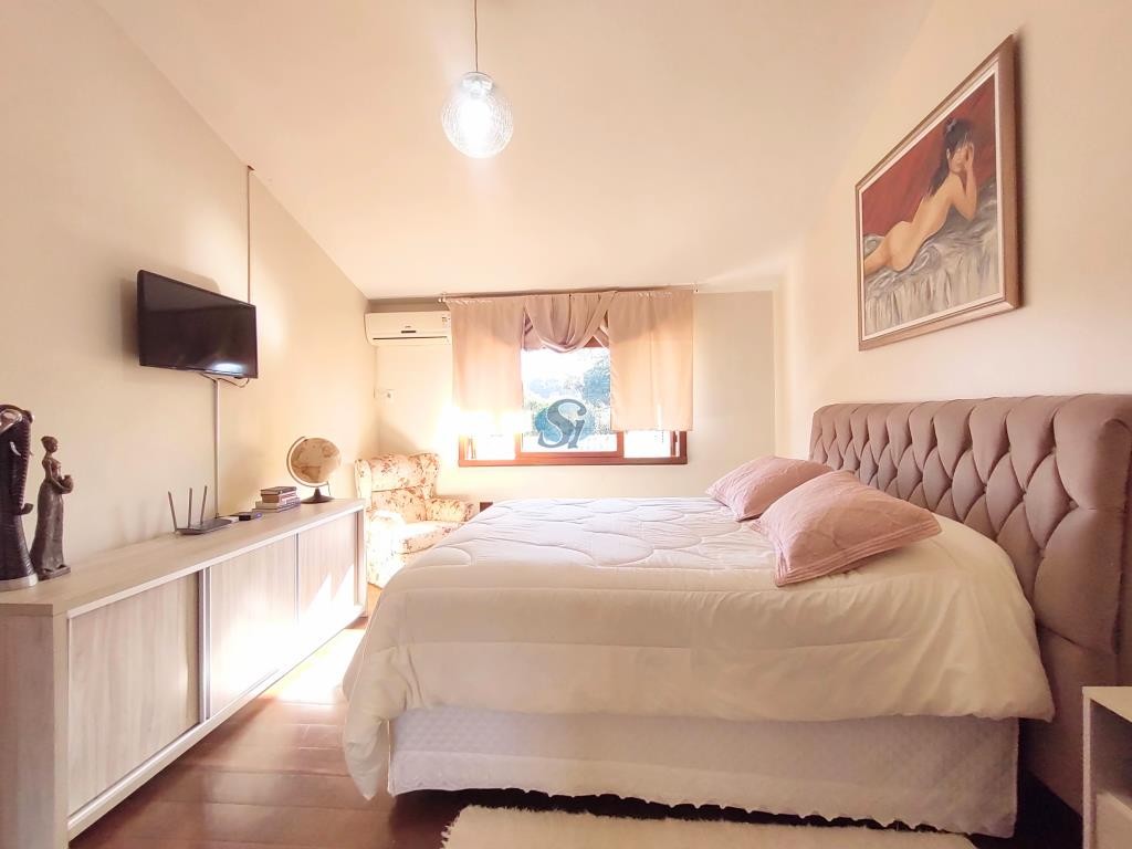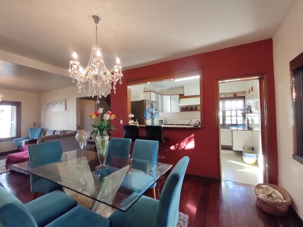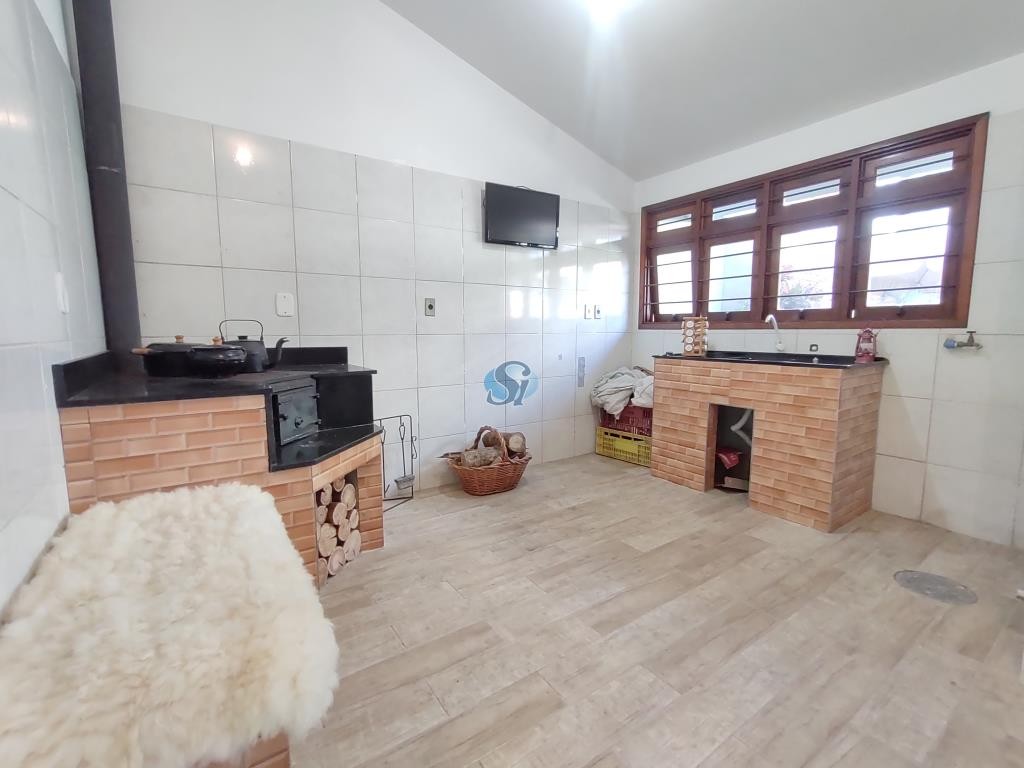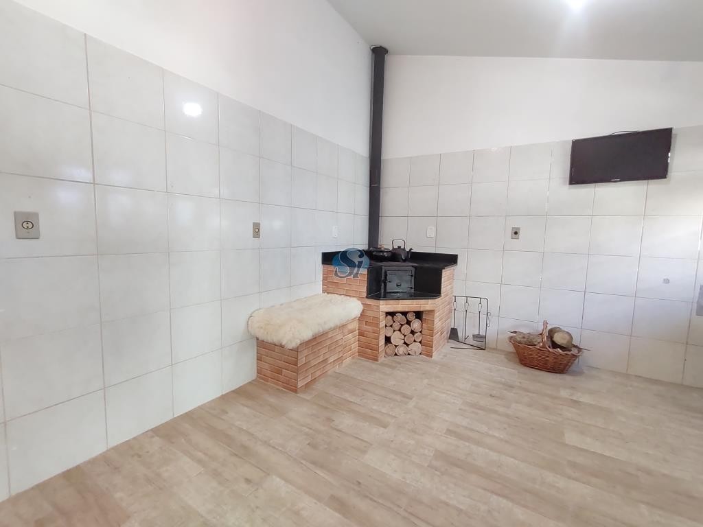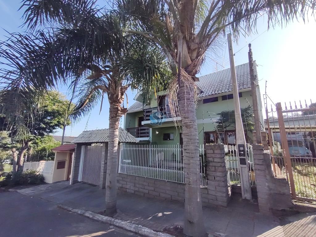 Casa de alvenaria com 238m de área construída, sendo três dormitórios amplos e bem iluminados, um deles é suíte com banheira e sacada. Na parte superior ainda há uma sala reservada com lareira para assistir filmes ou utilizar como escritório e um banheiro. Na área térrea a casa possui sala de estar e jantar com fácil acesso a cozinha dando visibilidade para todos os ambientes na parte térrea. Na parte mais reservada do térreo há um lavado e uma ampla lavanderia. Nos fundos há um espaço gourmet com churrasqueira, mesa de jantar e fogão campeiro. Para maior conforto a casa dispõe de água quente em todas as torneiras;