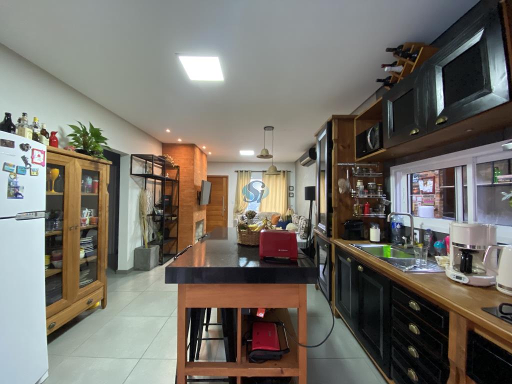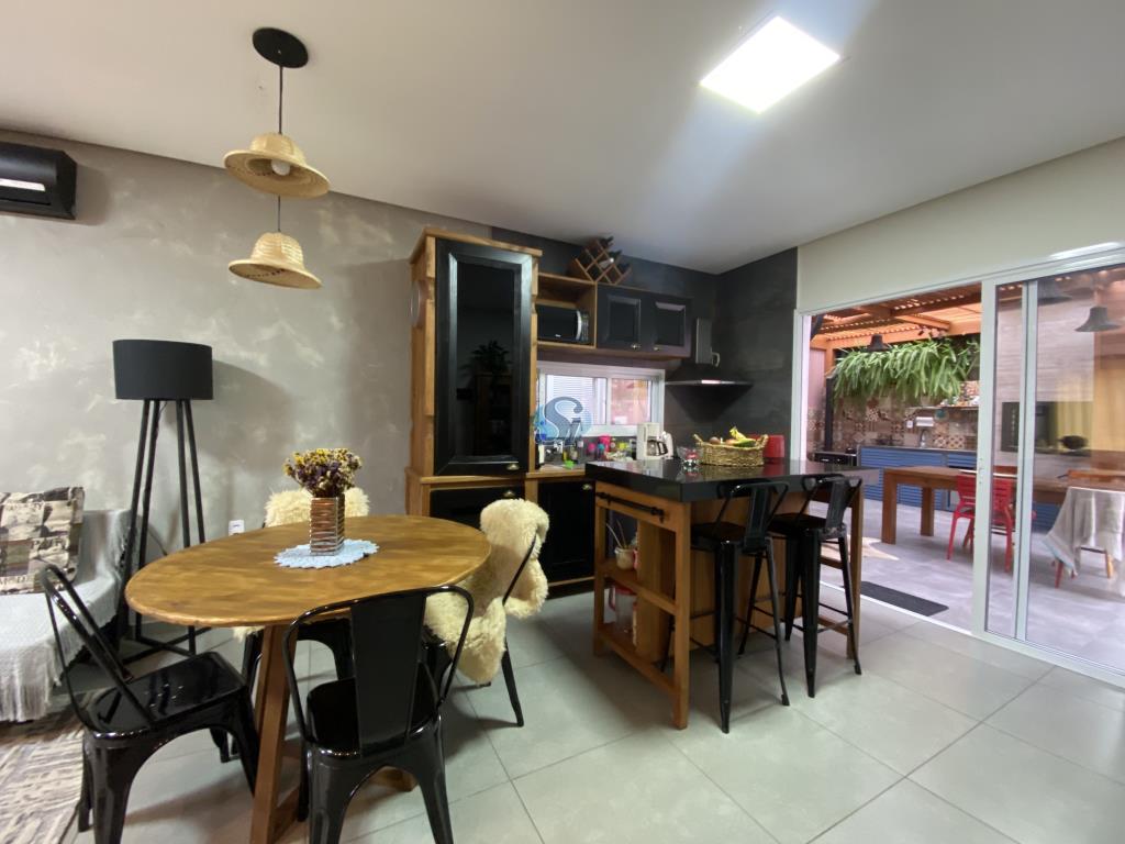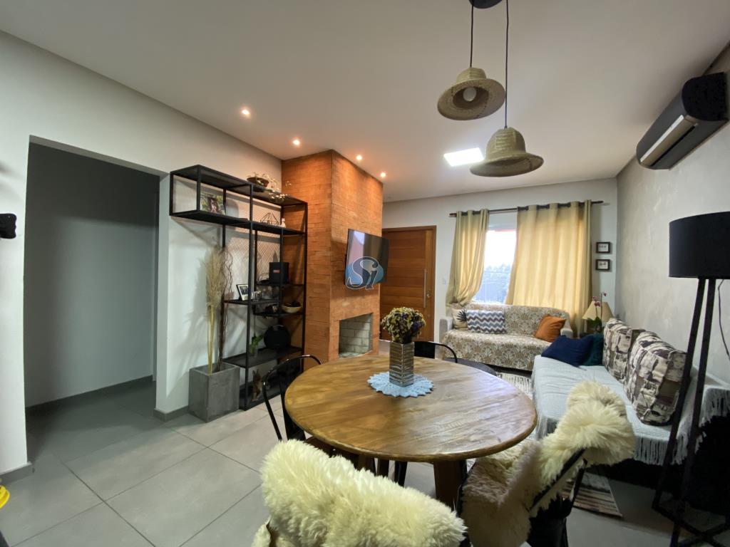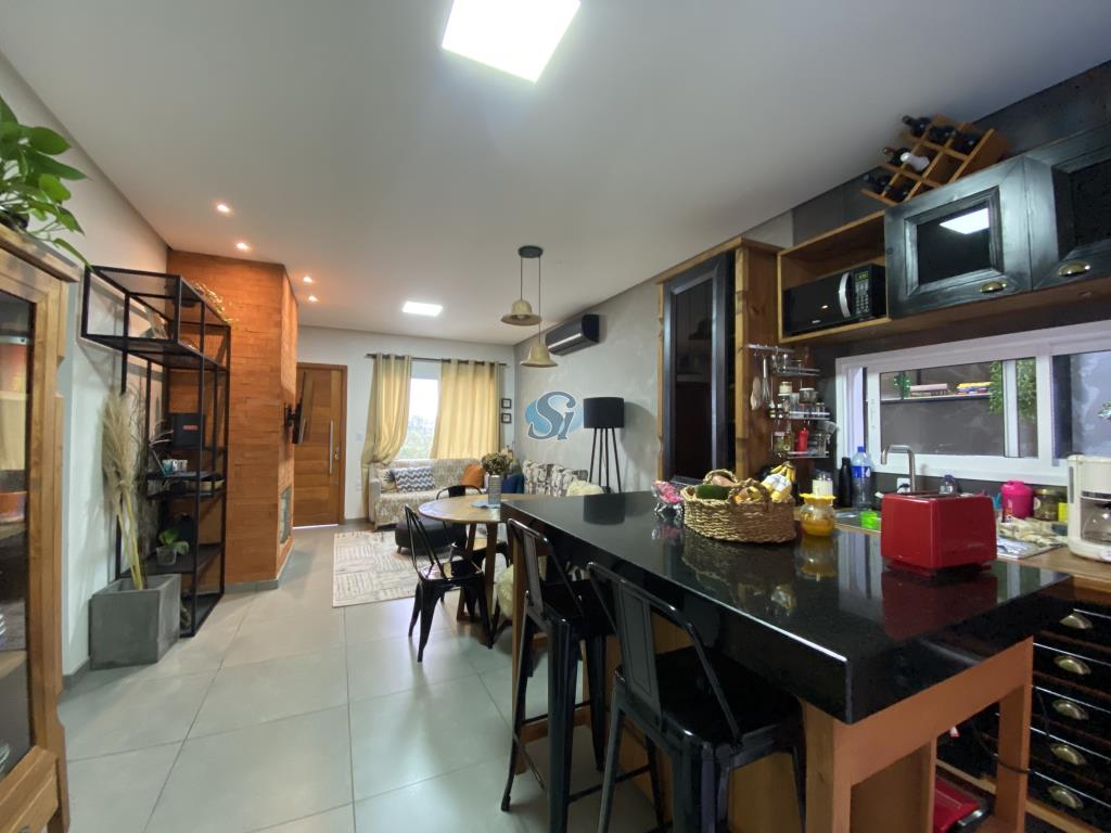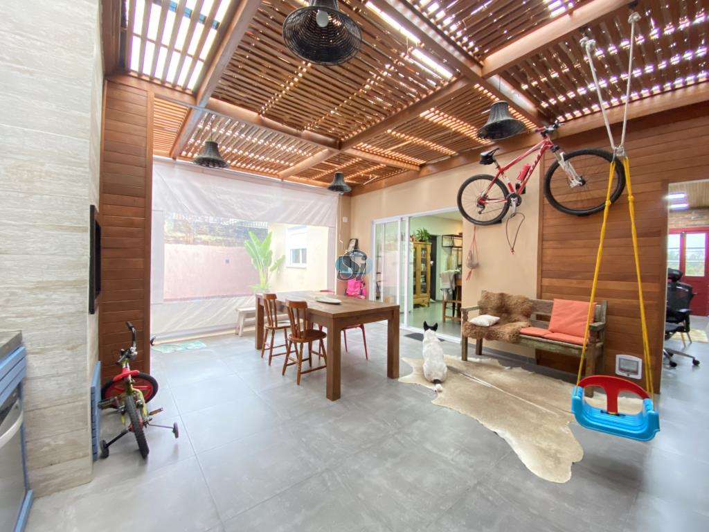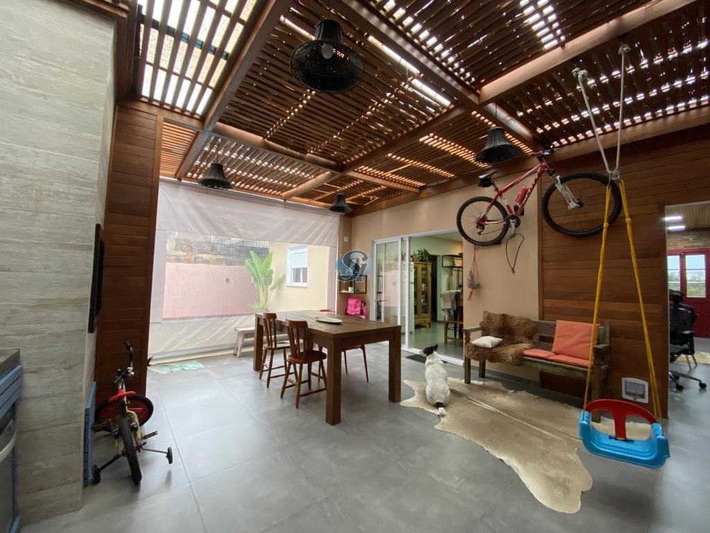 Linda casa em estilo industrial com três dormitórios (um suíte), sala e cozinha integrados, banheiro, lavanderia, lavabo e home oficce equipado. O espaço gourmet possui fogão a lenha para aquecer no inverno e fácil acesso para a piscina no verão.