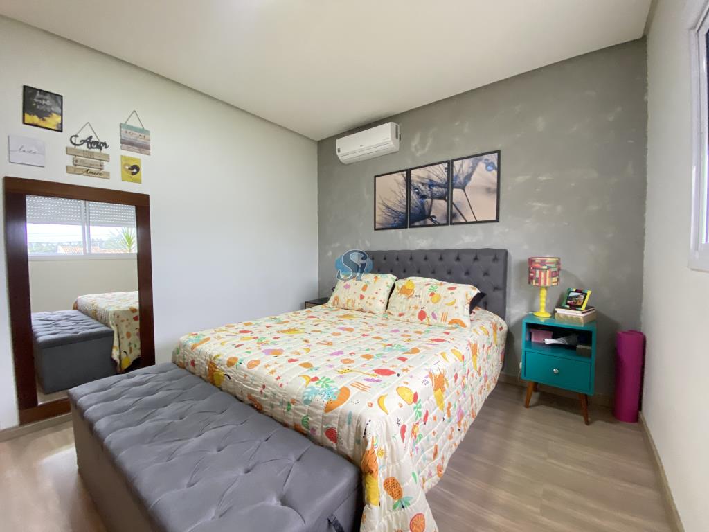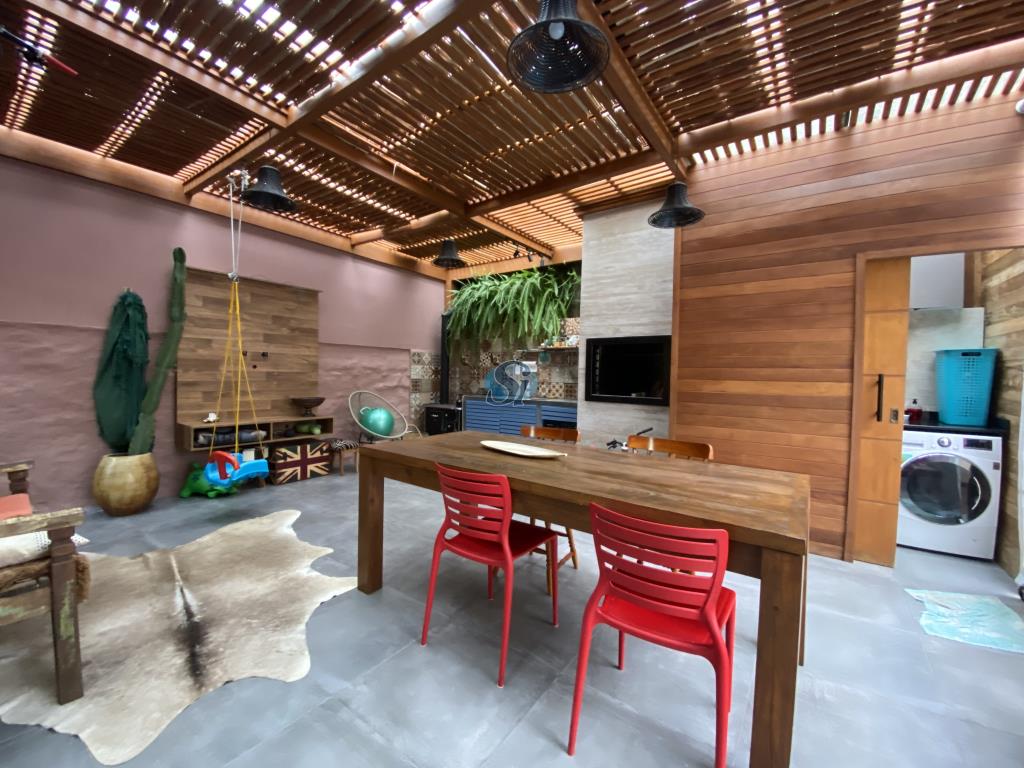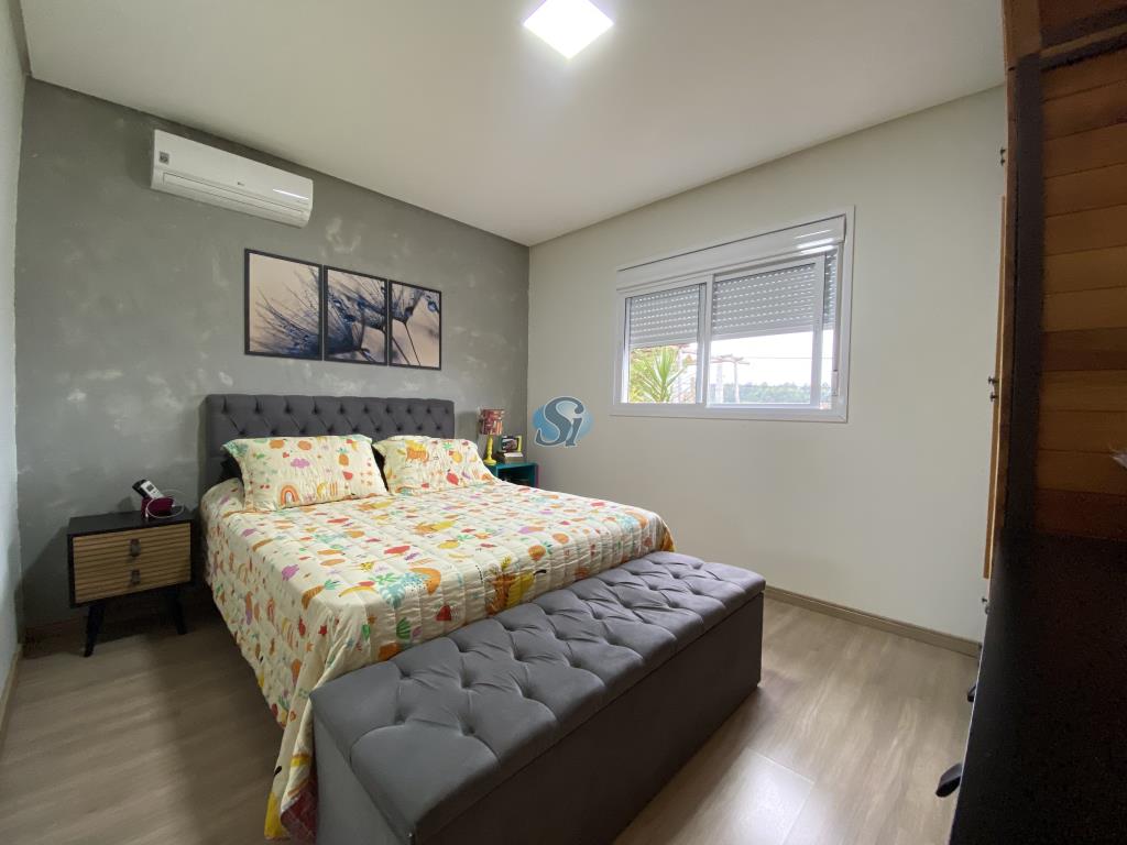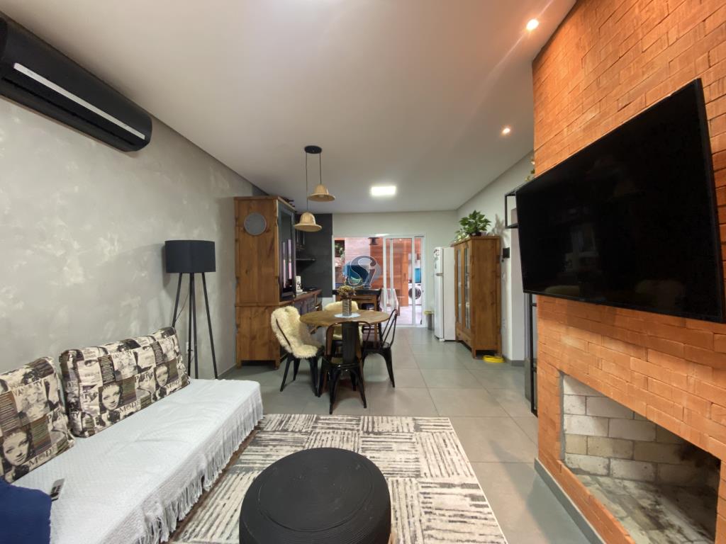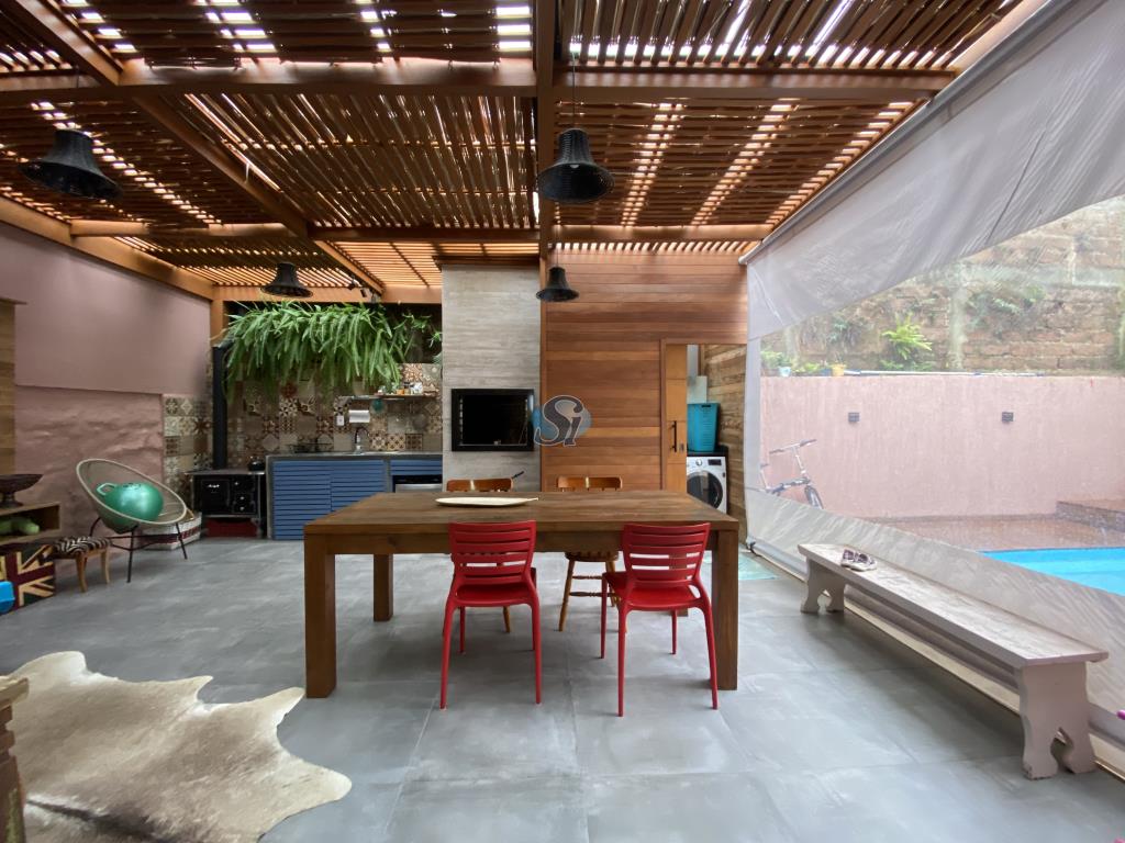 Linda casa em estilo industrial com três dormitórios (um suíte), sala e cozinha integrados, banheiro, lavanderia, lavabo e home oficce equipado. O espaço gourmet possui fogão a lenha para aquecer no inverno e fácil acesso para a piscina no verão.