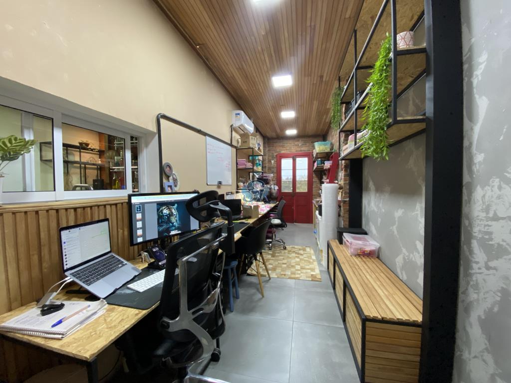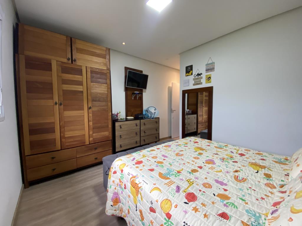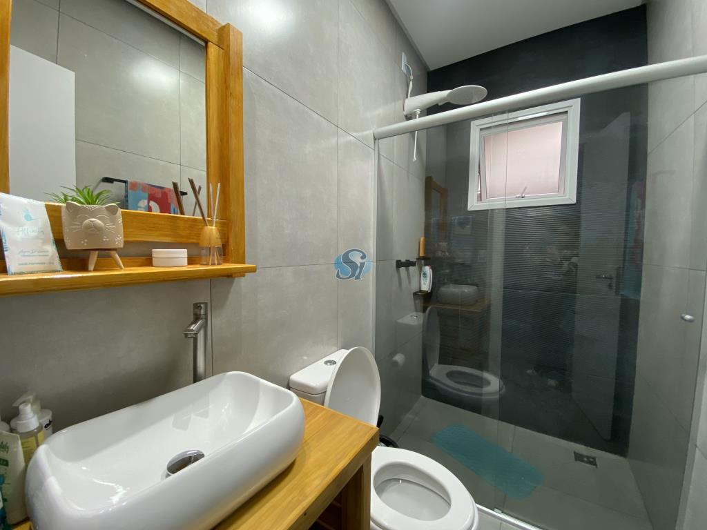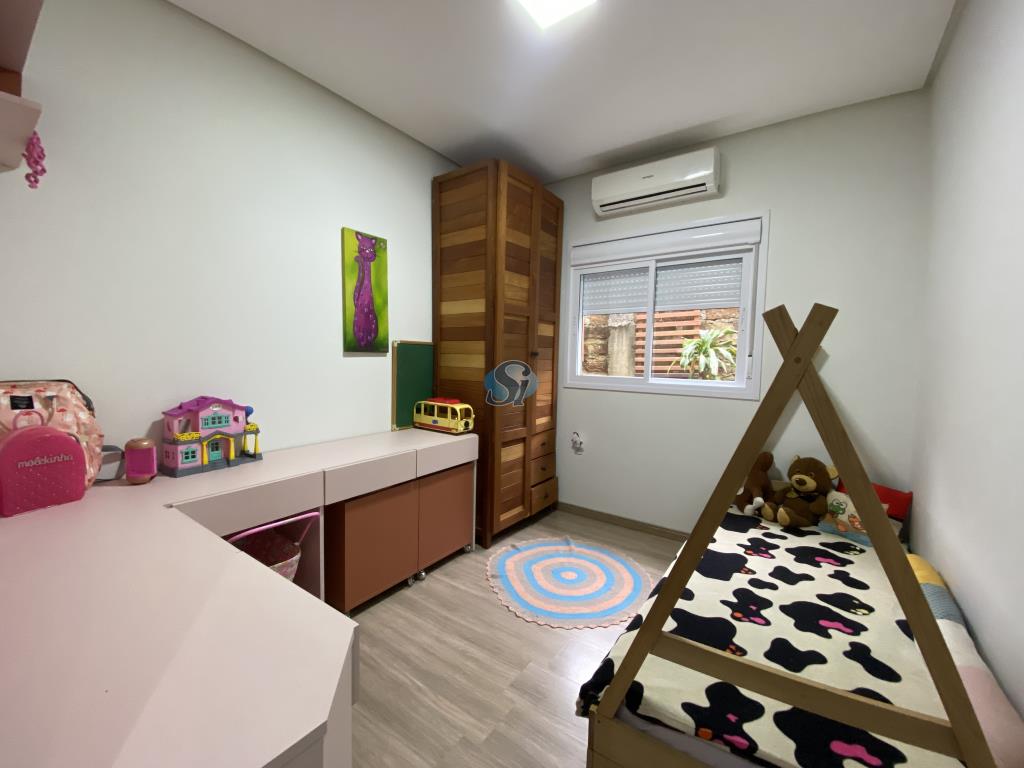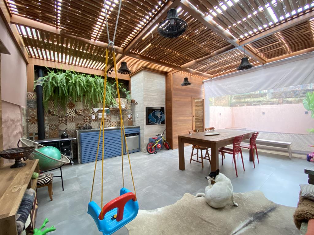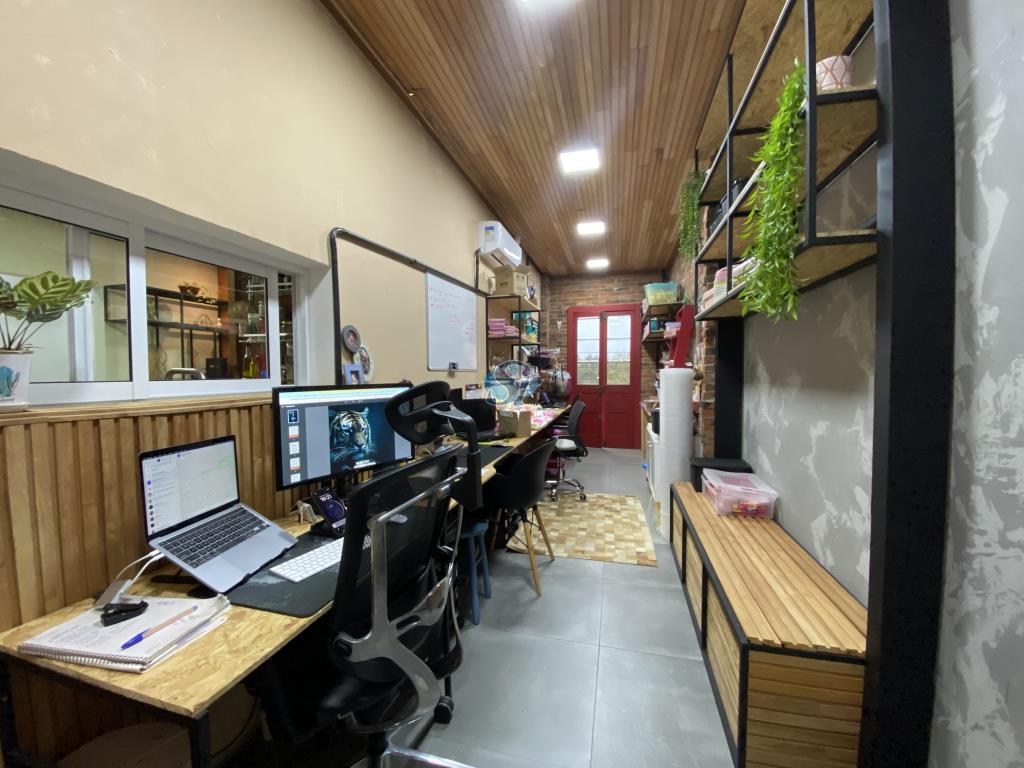 Linda casa em estilo industrial com três dormitórios (um suíte), sala e cozinha integrados, banheiro, lavanderia, lavabo e home oficce equipado. O espaço gourmet possui fogão a lenha para aquecer no inverno e fácil acesso para a piscina no verão.