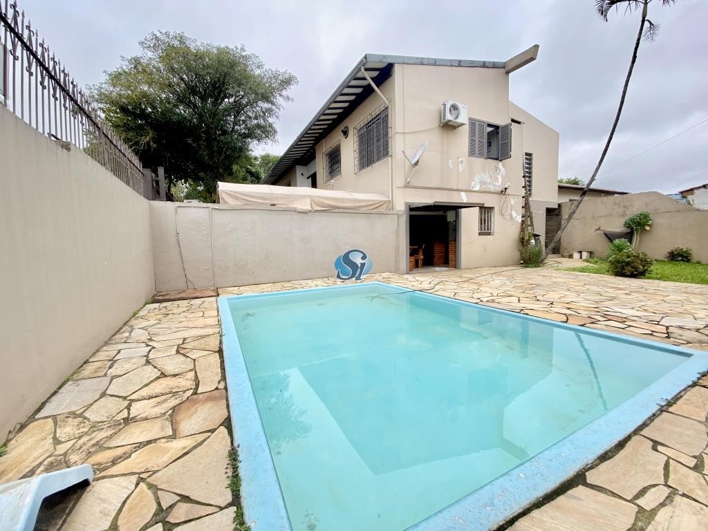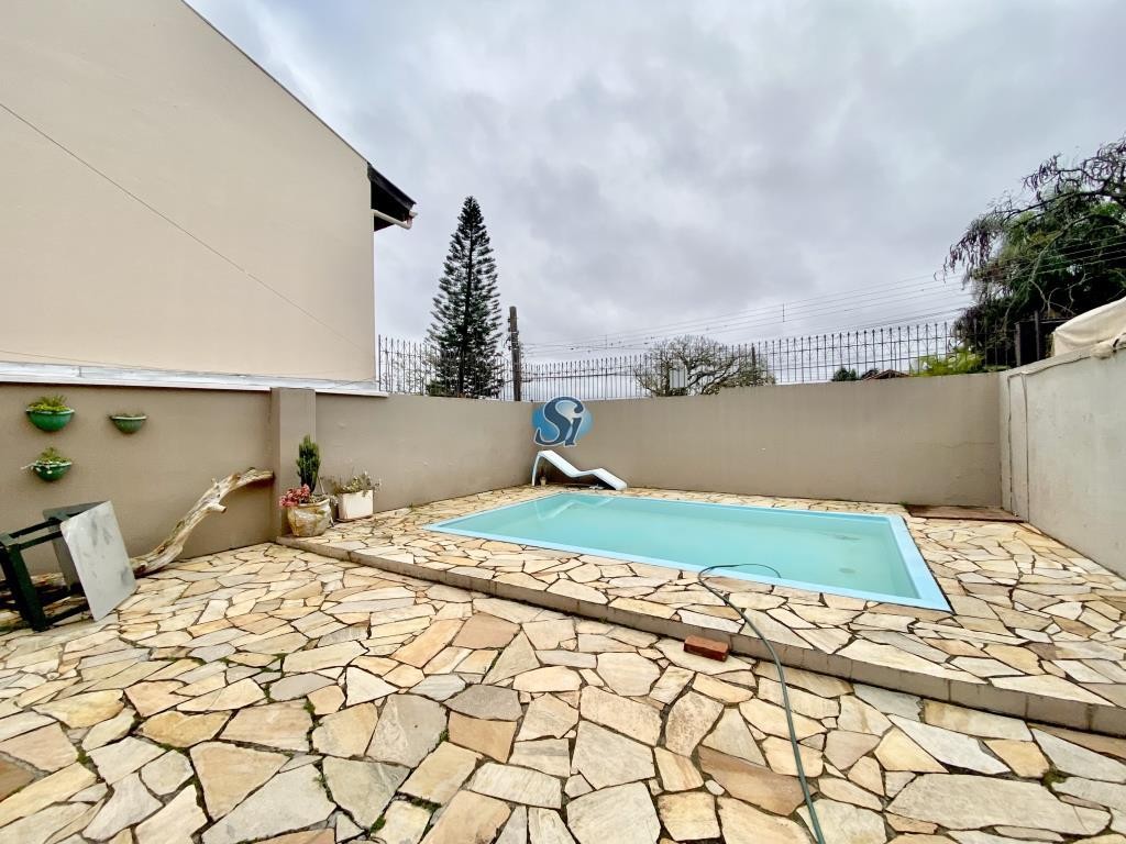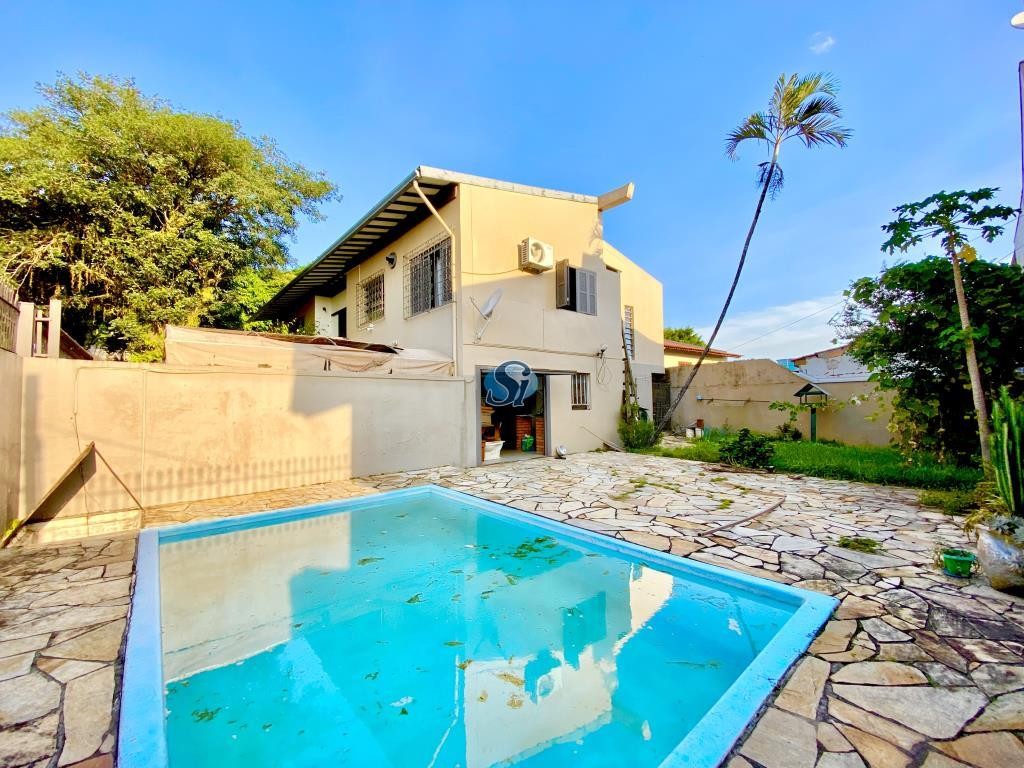 Casa com 3 dormitórios, sendo 1 suíte, cozinha, sala de estar, sala jantar, banheiro social, garagem, piscina.