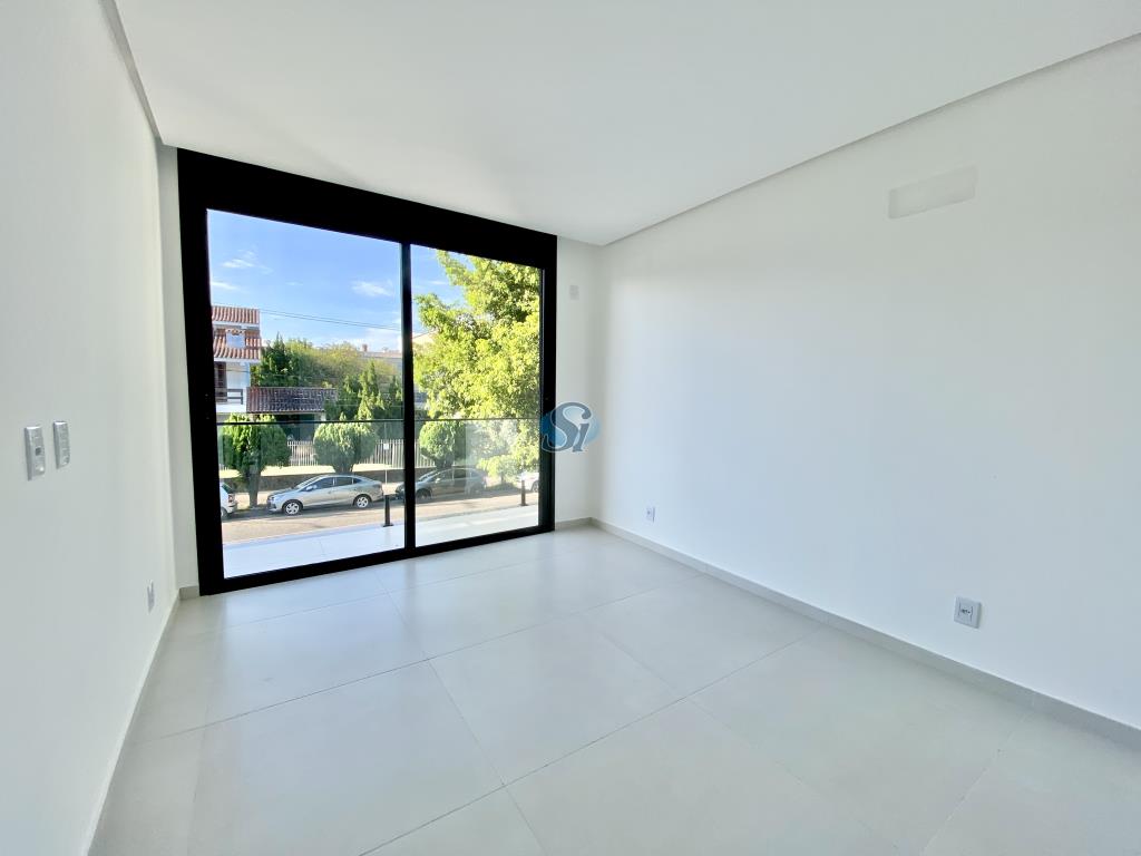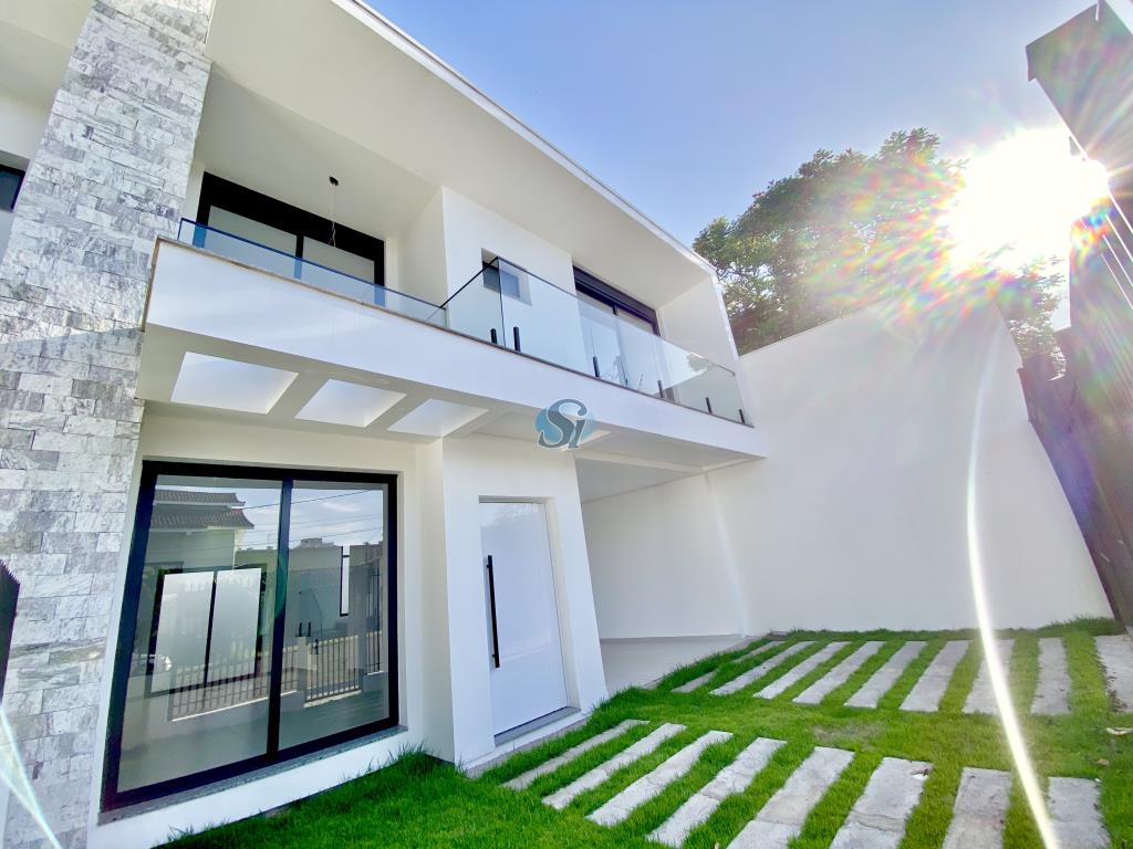 Sobrado contemporâneo com 137,79m², 3 dormitórios, sendo 1 suíte, sala 2 ambientes e cozinha com churrasqueira integradas, lavabo no térreo, banheiro no piso superior, garagem para 1 carro mais 1 vaga no pátio. Possui porcelanato acetinado retificado, rebaixo em gesso e aberturas em alumínio. Esperas para split, energia fotovoltaica, gás central e água quente. Terreno com 117,71m² gradeado e com portão. Pátio com grama e calçada PVS.