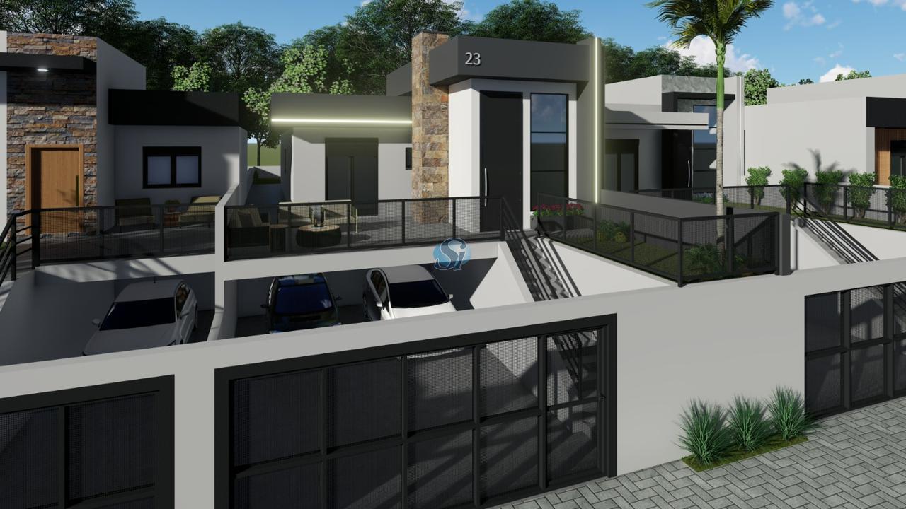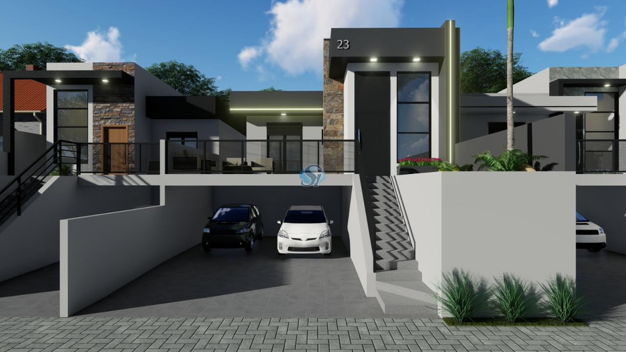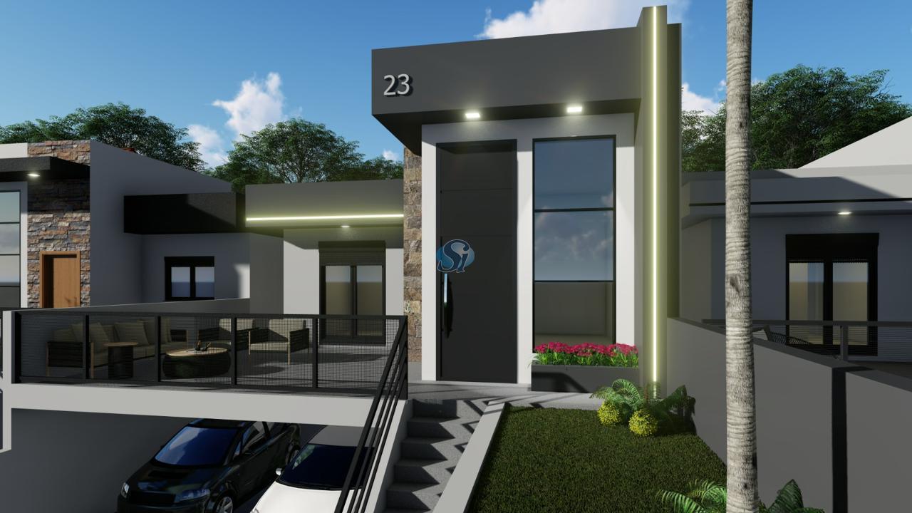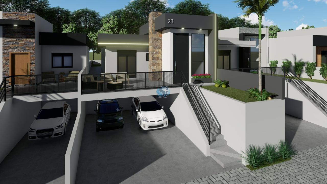 03 dormitórios; 1 quarto com suíte e sacada; 2 quartos, compartilhando uma suíte americana; 1 Lavabo; Área de serviço; Sala de estar/jantar e cozinha integrados; Aberturas em alumínio preto; Piso porcelanato; Rebaixo em gesso na sala de estar/jantar e cozinha; Vagas para 2 carros lado a lado coberta; Lareira; Ampla área Gourmet com churrasqueira; Espera para ar condicionado, água quente/gás, espera para energia solar; Piscina instalada; Toda murada, cercada, com portão de contrapeso, guarda corpo e com grama; Casa localizada em bairro alto da cidade e com uma vista incrível;