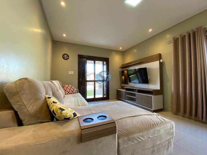 Casa com 3 dormitórios, sala de estar e jantar, cozinha, 2 banheiros, mezanino para escritório, garagem para 2 carros, lavanderia e salão de festas