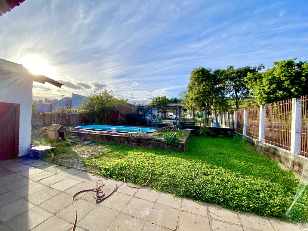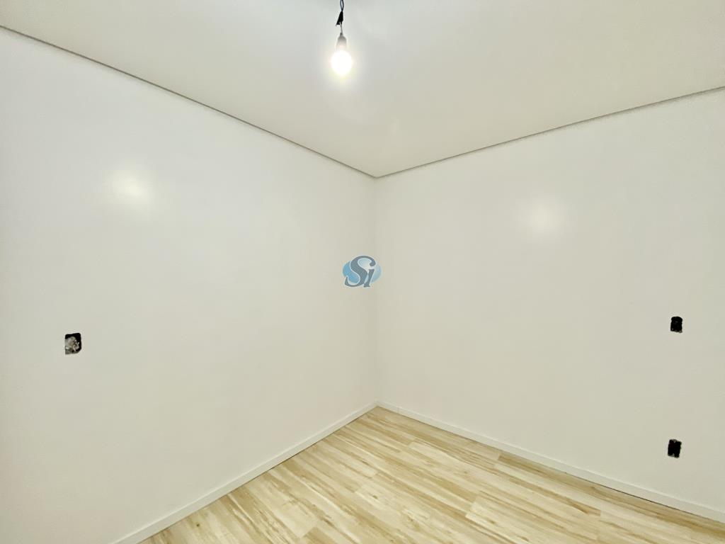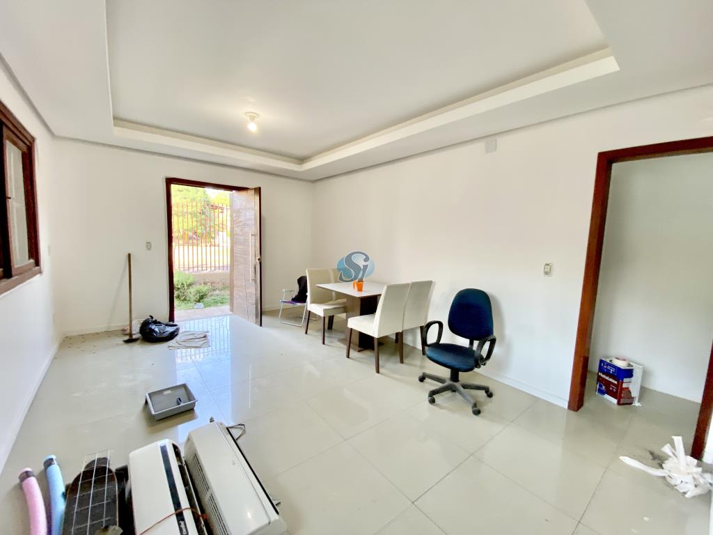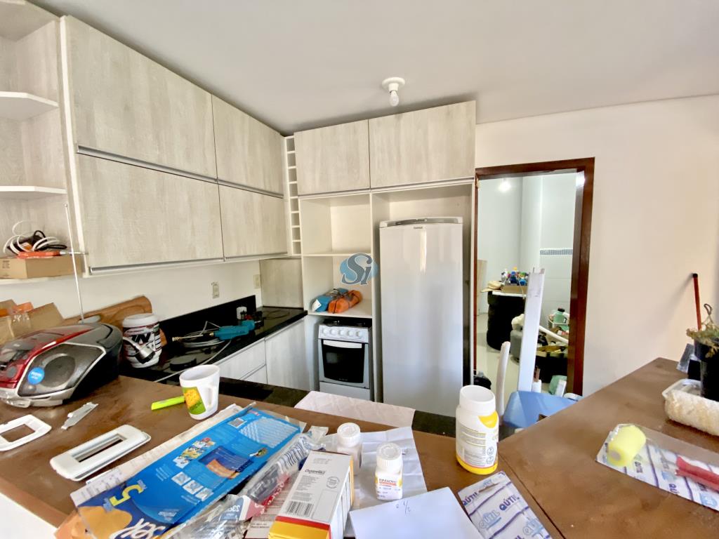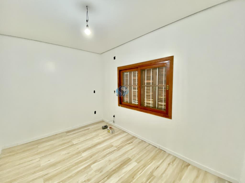 Casa com 3 dormitórios, sala e cozinha integrados, banheiro, área de serviço e garagem