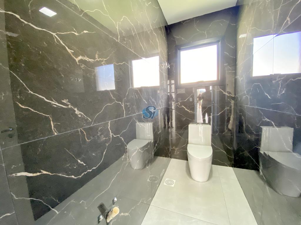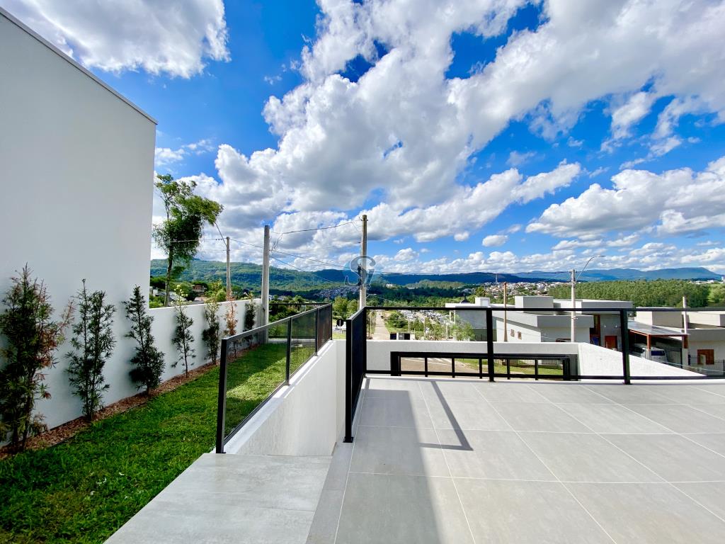 3 dormitórios, 1 quarto com suíte com sacada, 2 quartos, compartilhando uma suíte americana, 1 lavabo, área de serviço/despensa, sala de estar/jantar e cozinha integrados, aberturas em alumínio preto, piso porcelanato, rebaixo em gesso na sala de estar/jantar e cozinha, vagas para 2 carros lado a lado coberta, churrasqueira, espera para ar condicionado, água quente/gás, espera para energia solar, piscina (espera), cercada, com portão de contrapeso e com grama, casa localizada em bairro alto da cidade e com uma vista incrível.