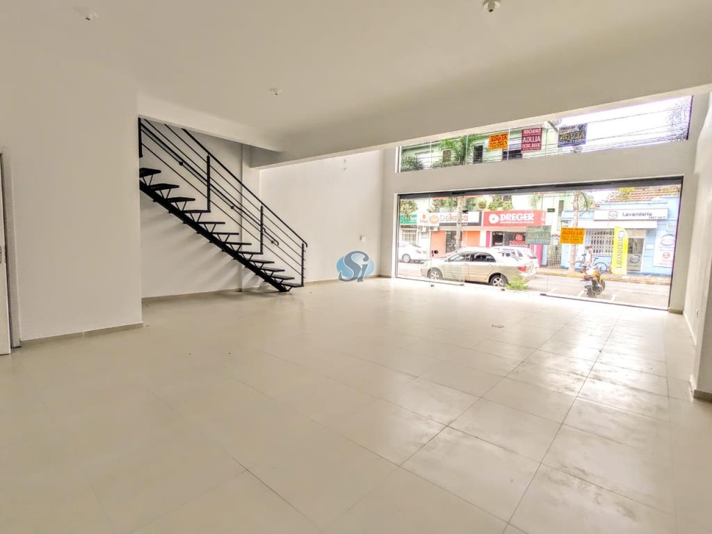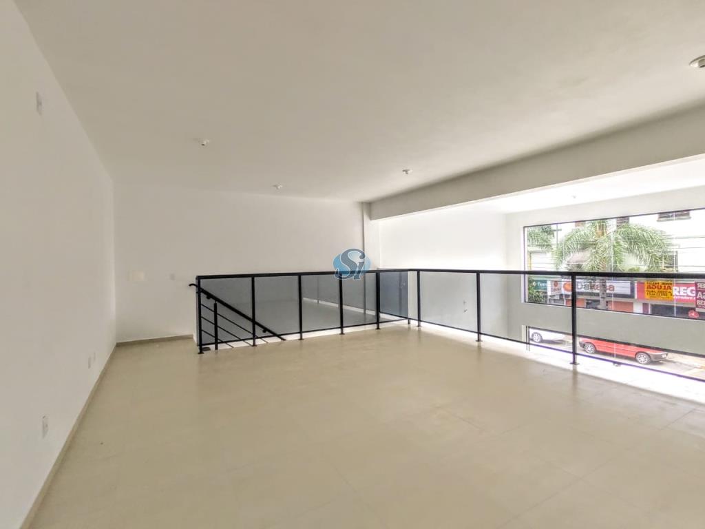 Sala comercial com 70m térreo e 30m de masanino. Possui um banheiro. Portas automaticas.