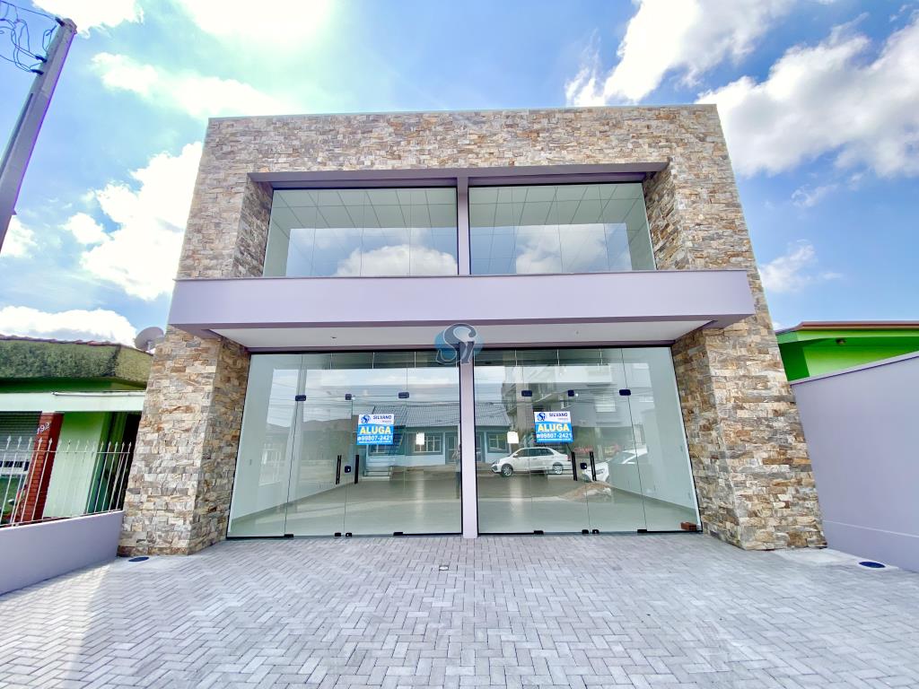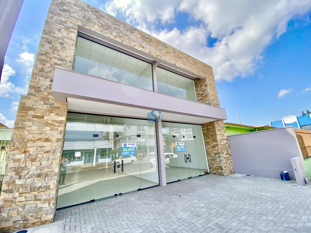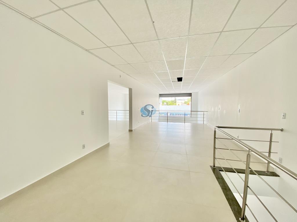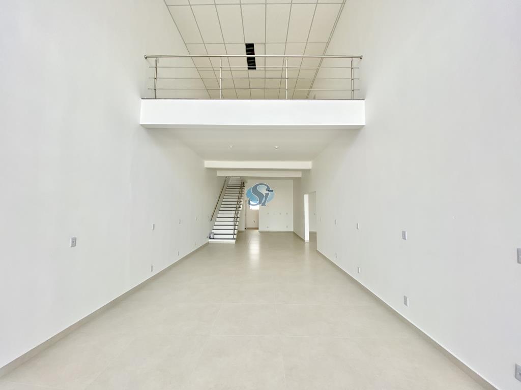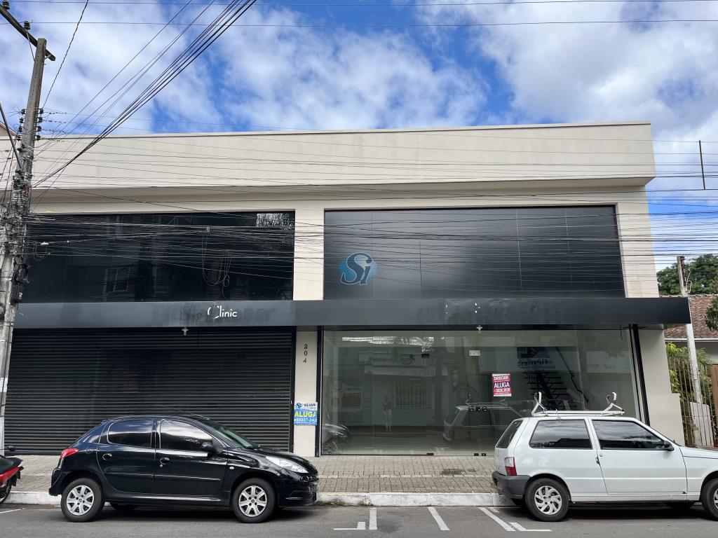 Sala comercial com 63m² de área no térreo e 43m² de área no andar superior (mezanino), totalizando 108m², próxima a escola na região central.